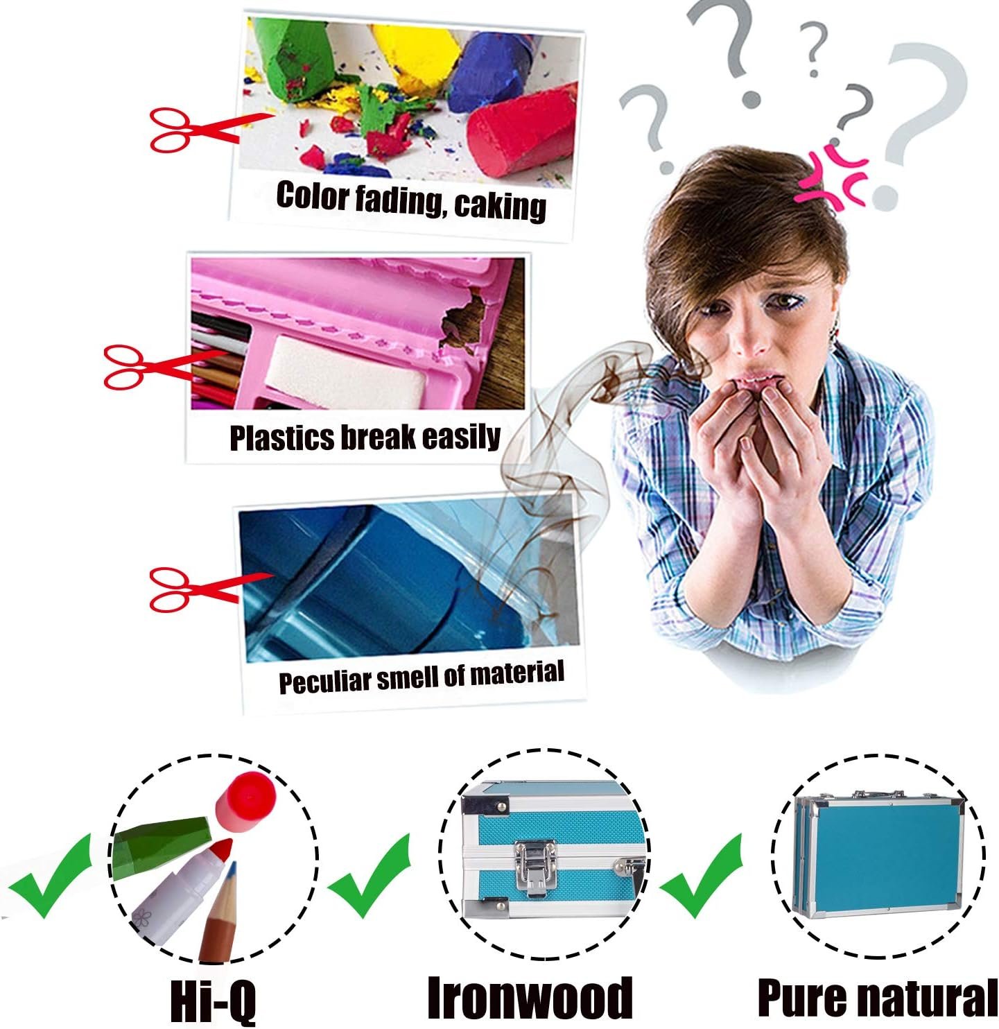 【Not Only Drawing Set】It’s an amazing art crafts! This drawing kit is pretty fancy, heavy duty, each side has a pull up part to reveal more drawing items underneath, lots of pre-sharpened colored pencils, watercolor cake, flower shaped palette; The second layers has markers, and pastel crayons. Perfect painting fun school supplies for teens, encourages kids to be creative and artsy. Art case can be reused once all the art sets are done with in many years