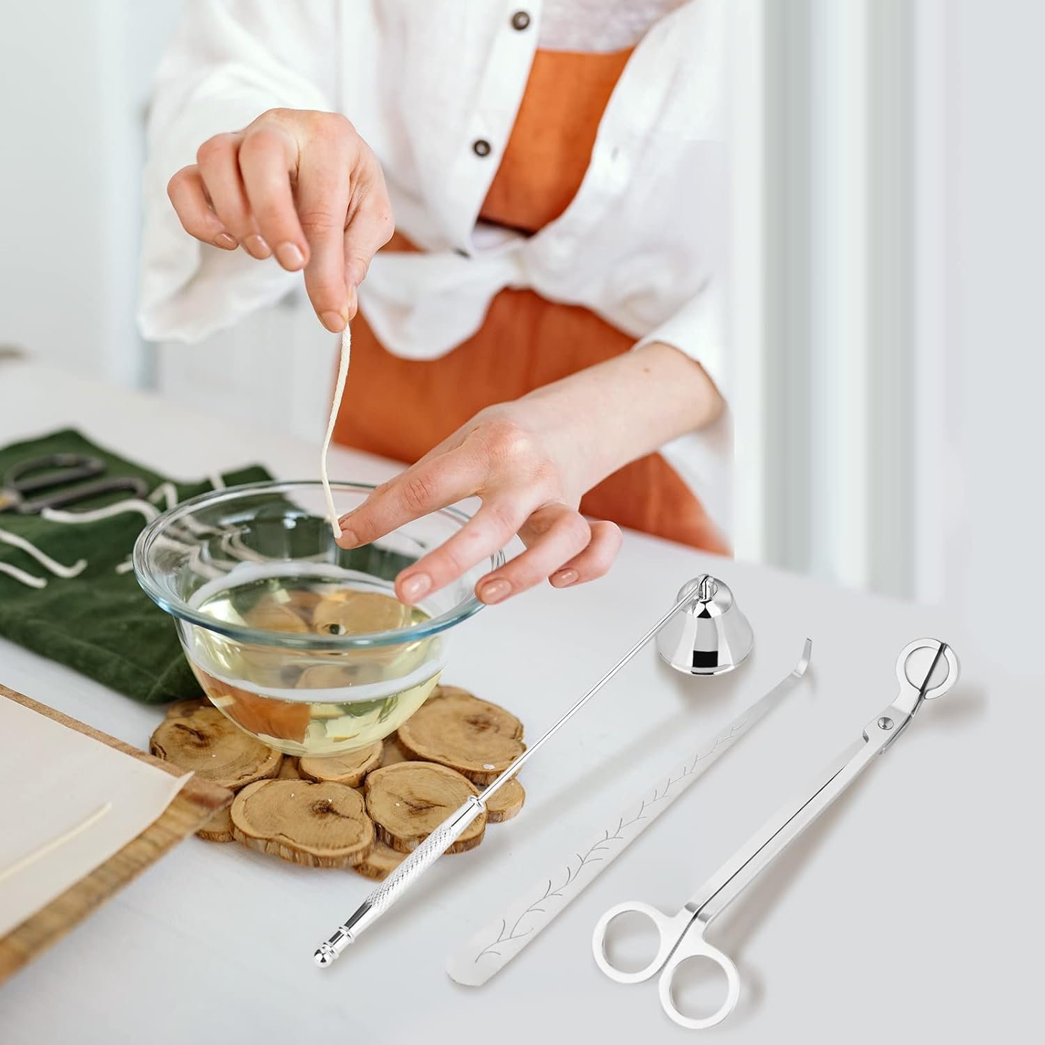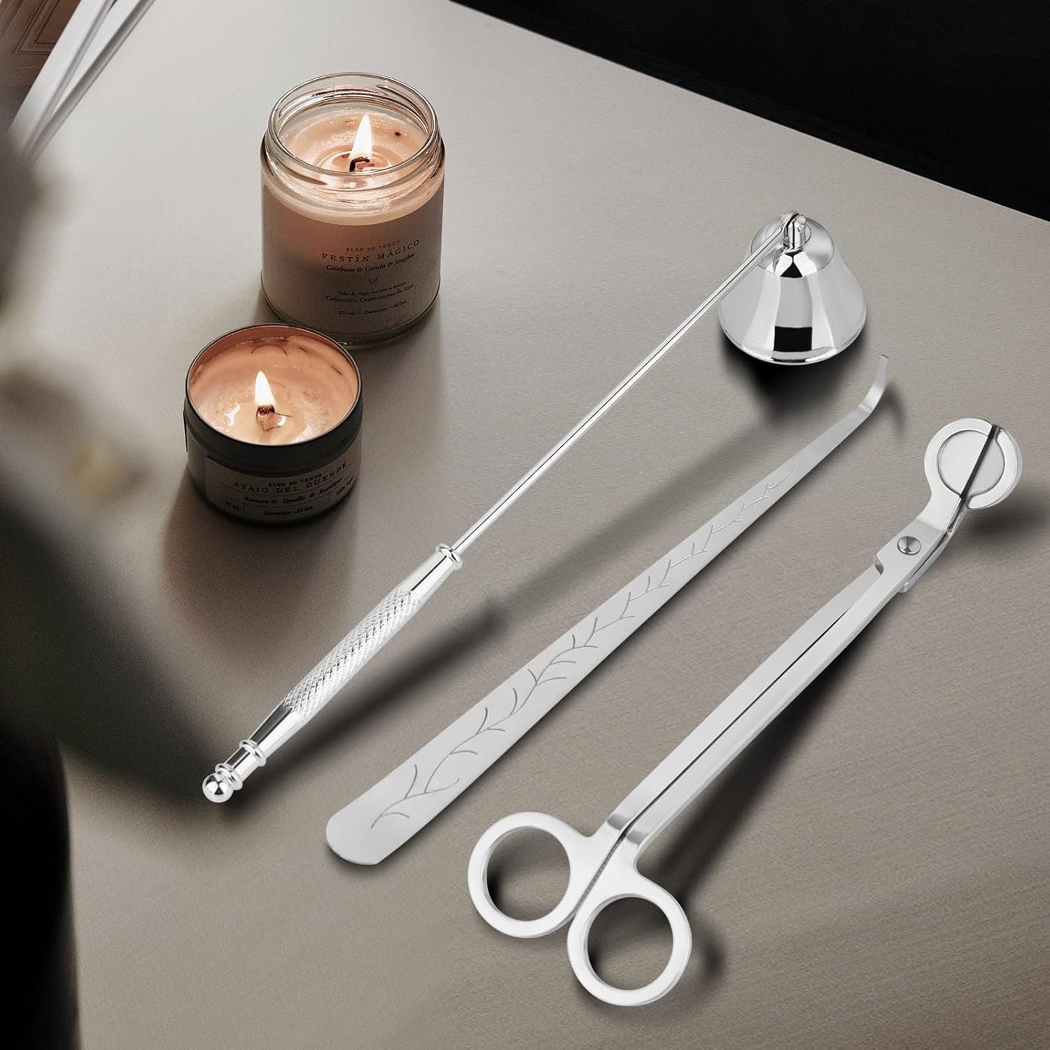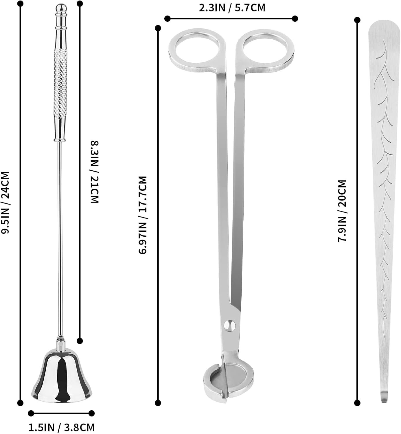 Candle Accessory Set: 3 in 1 candle care kit includes wick trimmer, candle snuffer, wick dipper.