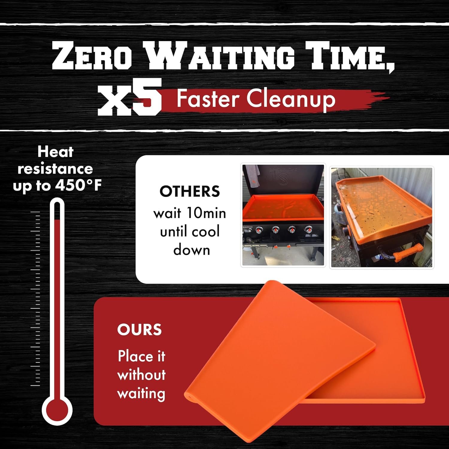 PROTECTS YOUR SEASONING, ZERO WAITING – With heat-resistance up to 450°F, this silicone griddle mat can be placed right after grilling – no need to wait. Seal out moisture and preserve your seasoning, so your griddle is always clean and ready.
