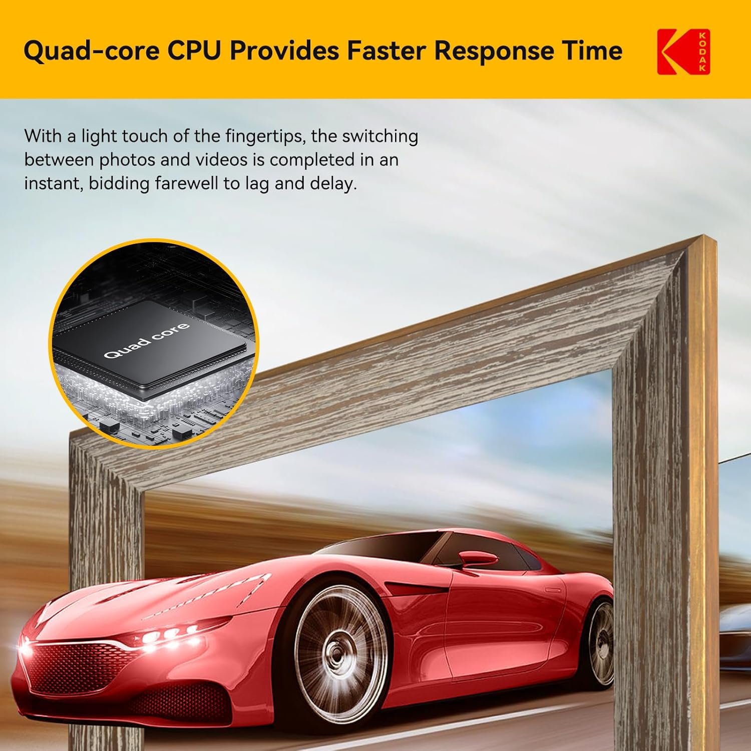 【Ultra Clear Image Quality】: KODAK digital picture frame was developed with the idea that it is difficult to maintain a photograph of the actual item when it comes to fading or dusting. So this digital photo frame allows you to recreate a vivid screen every time.10-inch and IPS (1280 x 800) high-resolution touch screen (16:10) for easy operation, quick response, and 178° wide viewing angle.