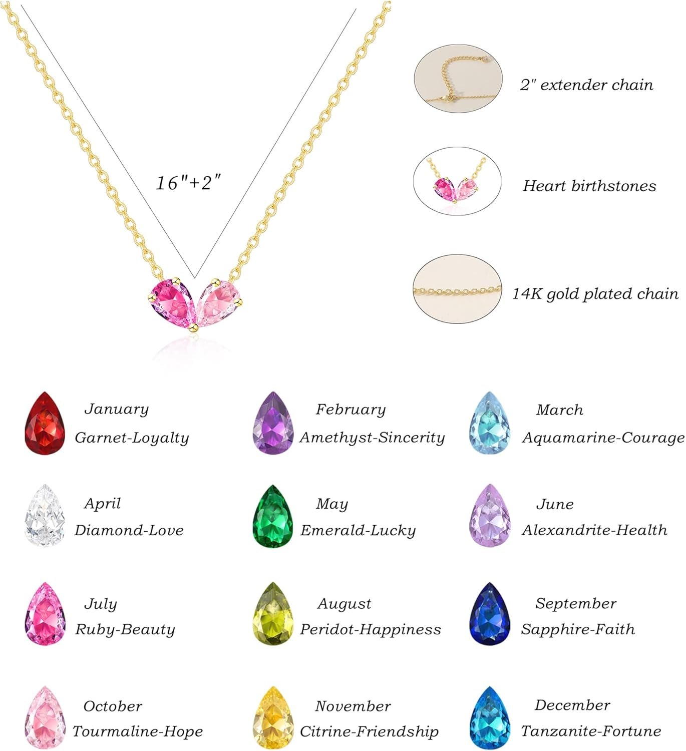 2 BIRTHSTONE NECKLACE FOR WOMEN