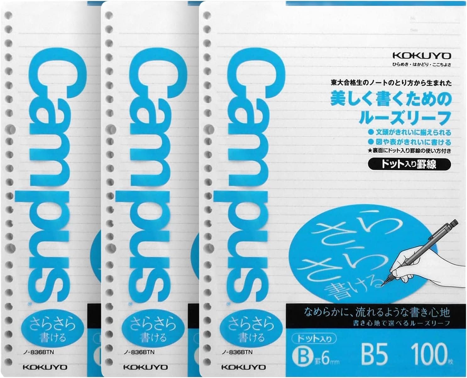 [B5 Size with 26 Holes] The paper is B5 sized with 26 holes, making it perfect for use with a binder or other storage system. Each pack contains 100 sheets of high-quality, sarasara-type loose-leaf paper with plain horizontal lines and 36 rows for easy writing.