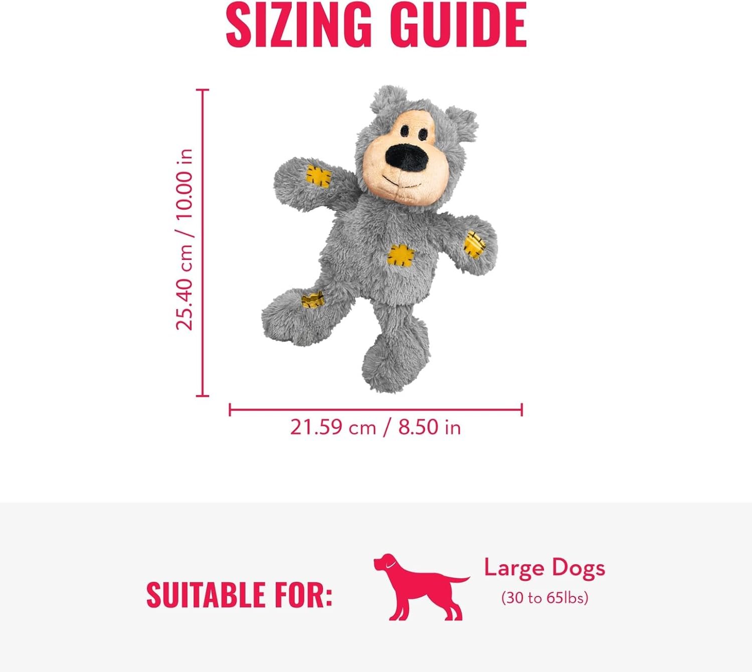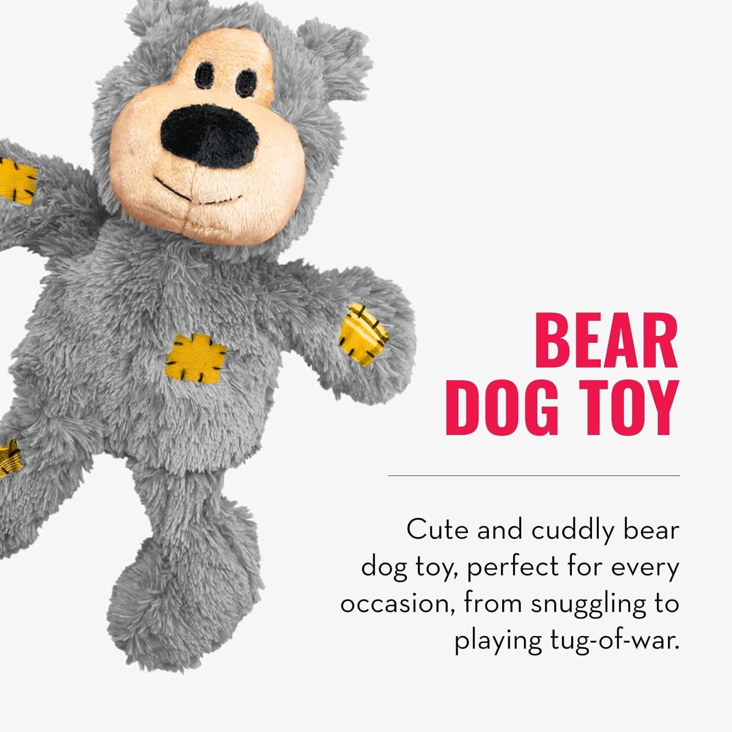 Fun & Unique Knots Bear: The KONG Knots Bear is soft yet strong, with a reinforced plush body and a knotted skeleton; stuffed chew toy squeaks to entice play