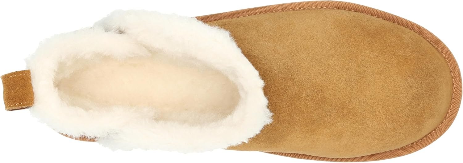 A mini boot that packs major mileage, the new Ultra Mini exudes “It Girl” appeal, with plush spill seams and a curved topline. Sporting a sleeker, ankle grazing silhouette that works from Pilates to play dates, this women’s mini pull-on boot keeps feet toasty warm with a suede upper and faux fur lining.