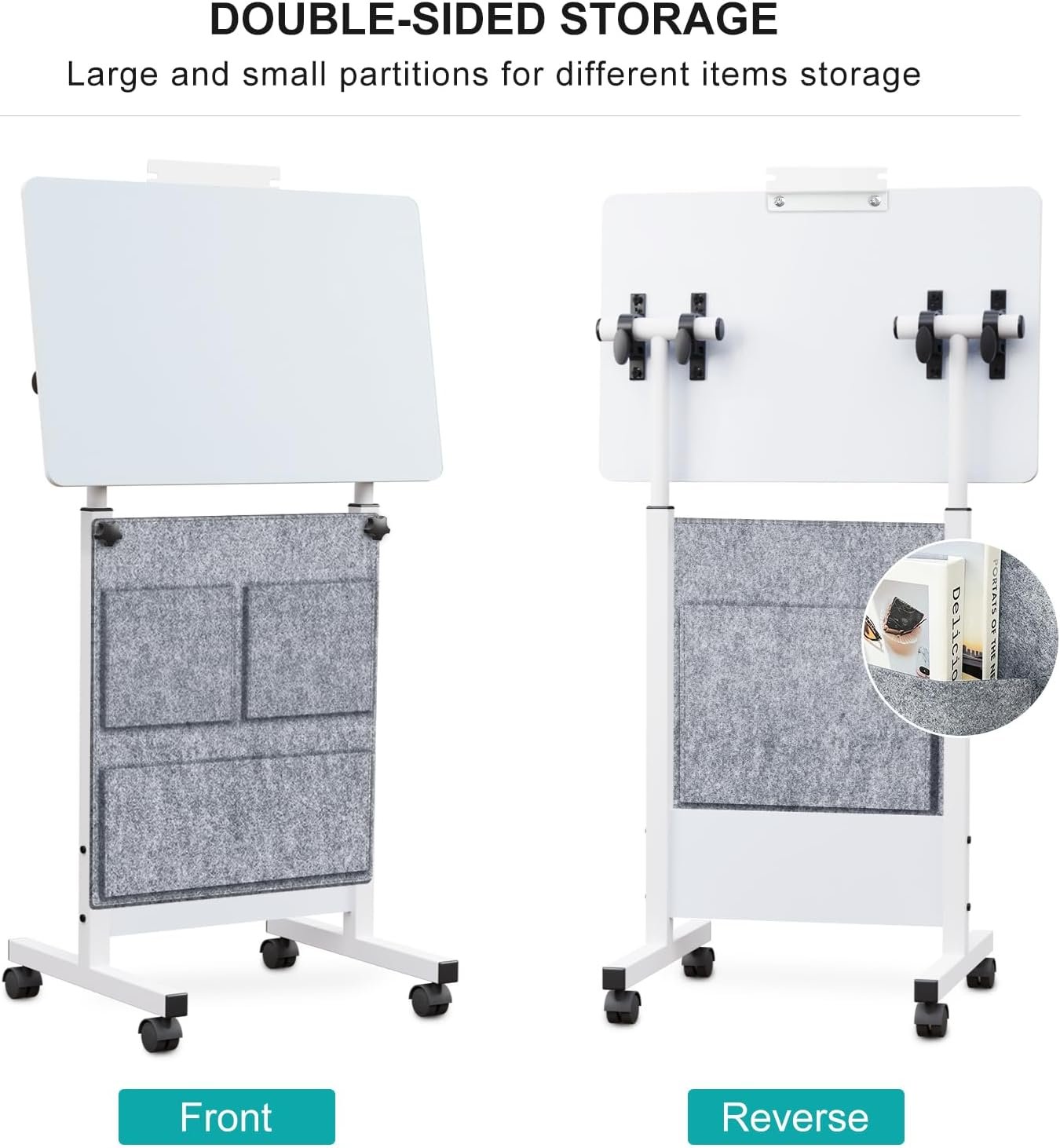 Fixable wheels:Enjoy smooth-gliding mobility with four 1. 5-inch caster swivel wheels. Simply screw wheels in for a portable workspace that stays put when you need it;16 * 24 inches size, to create a comfortable office environment