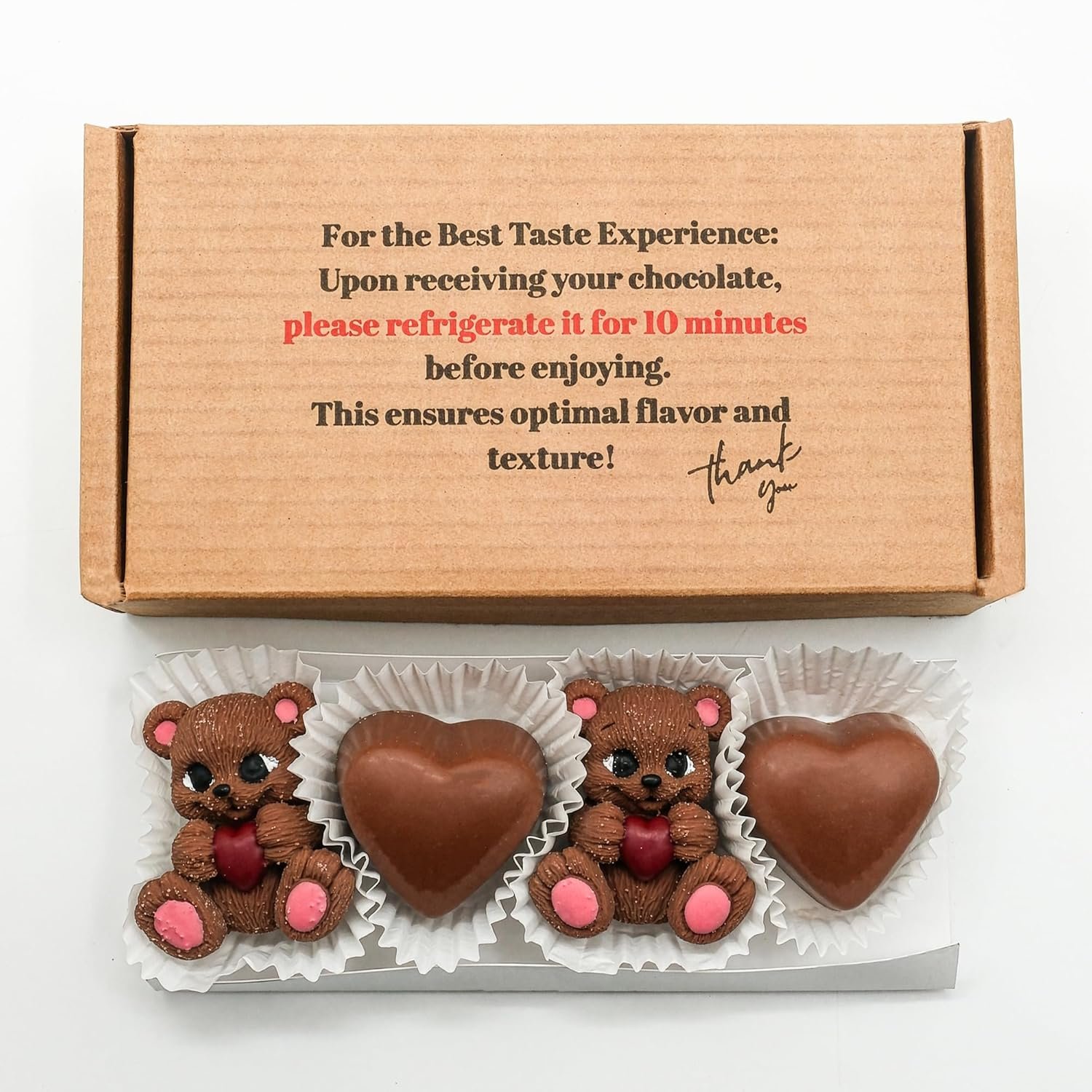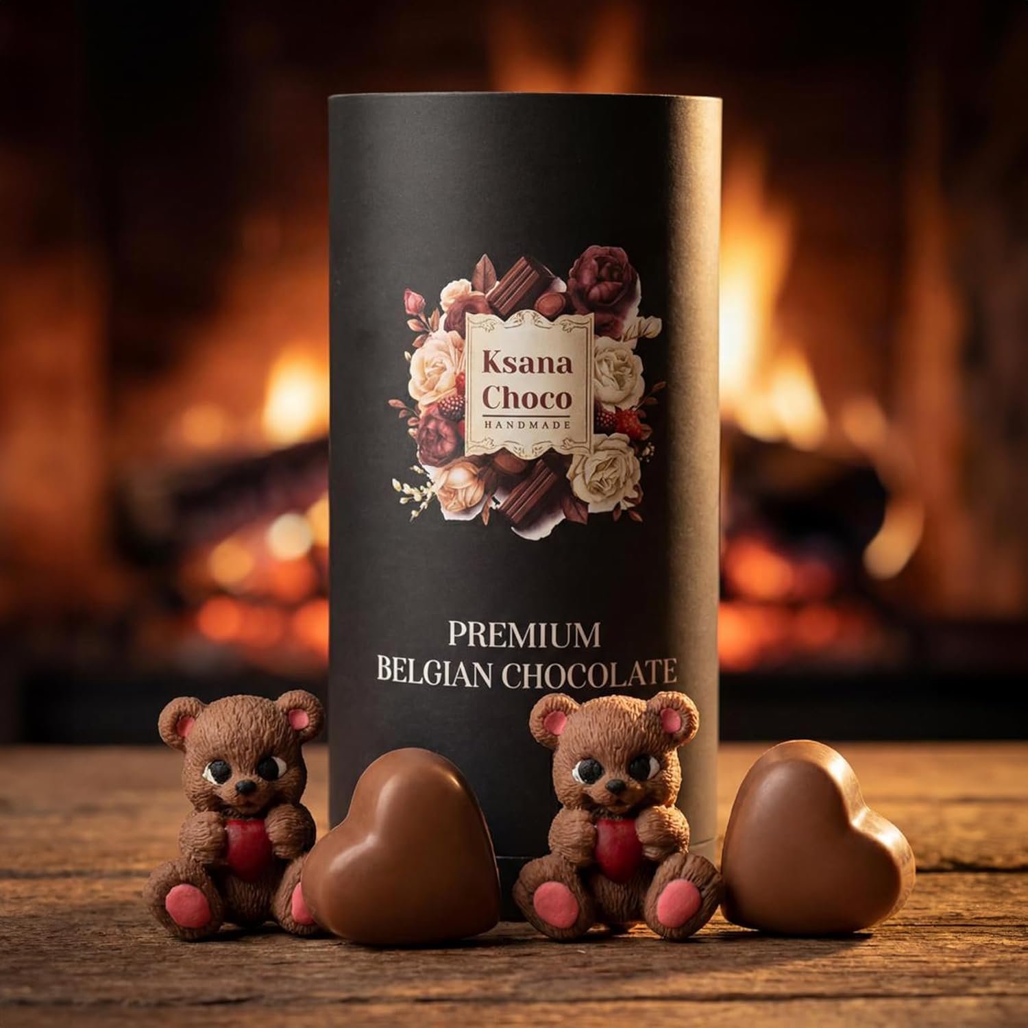 Indulge in Ksana Choco Handmade’s premium Belgian chocolate gift box — featuring adorable bear and heart-shaped artisan milk chocolates, each generously filled with our signature Fibella hazelnut cream. Crafted by hand in small batches, this elegant 9-piece selection is designed for gifting and special celebrations. Presented in a ready-to-gift ribbon box. Store in a cool, dry place (15–22°C). Handmade in Turkey.