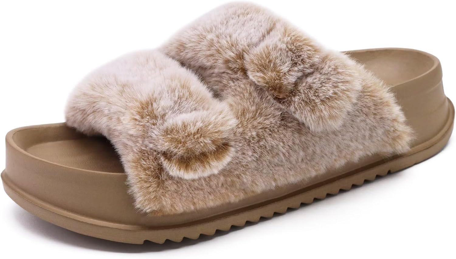 KuaiLu Women’s Fluff Slippers Plantar Fasciitis Arch Support Platform Slippers Ladies Fashion Open Toe Faux Fur Sliders Womens House Slipper Size 6-12