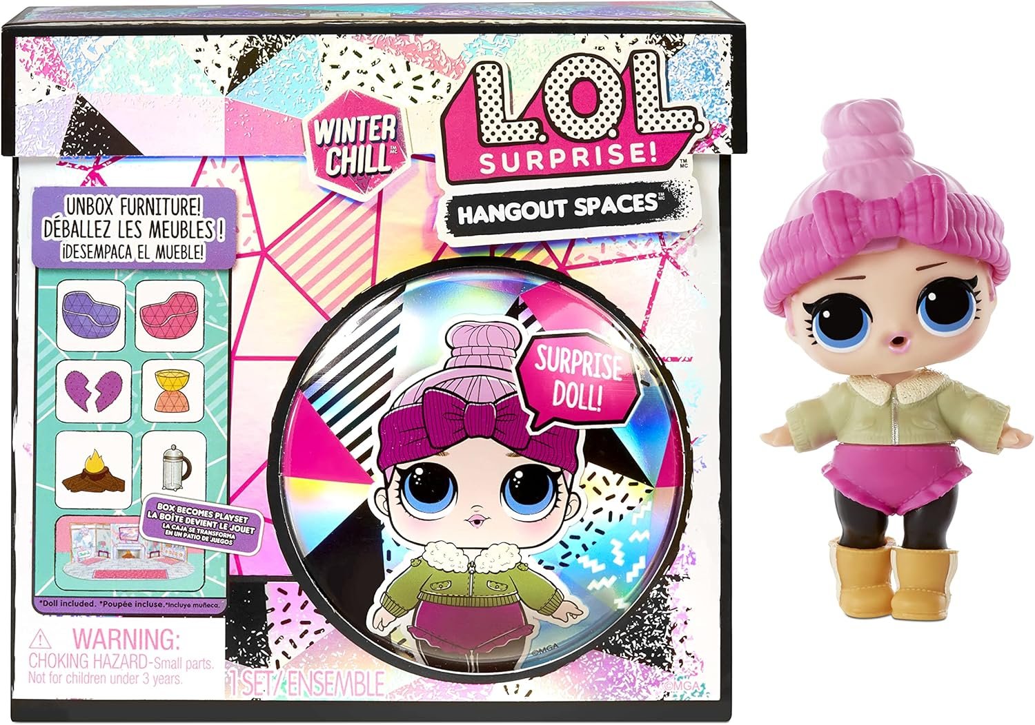 As it gets cold outside, it’s time for the fierce LOL Surprise dolls to head inside… and what better place to go than the brand new LOL Surprise Winter Chill Hangout Spaces?! Introducing the all new LOL Surprise Winter Chill Hangout Spaces furniture playset with Cozy Babe doll! Unbox 10+ surprises, including a doll, a fold-out playset scene, a light up accessory and all the furniture she needs for a complete hangout session. Includes re-released, fan favorite LOL Surprise doll, Cozy Babe, with all her fabulous furniture and fierce accessories. This set comes in reusable packaging as the box also folds out to become a complete playset! There are 4 styles and dolls to collect! You can connect playset scenes together for even more fun. Plus, you can use your Winter Chill Hangout Spaces furniture with your favorite LOL Surprise House. LOL Surprise collectible dolls and playsets come with many detailed surprises including doll and dollhouse furniture accessories and pieces to make a perfect toy for kids, especially including 4 to 7 year olds and up girls and boys, for imaginative pretend play- even more fun with a LOL Surprise dollhouse! As birthday gifts and gift for any special occasion, dolls provide hours of social play with siblings and friends! From MGA Entertainment, creators of LOL Surprise fashion and collectible dolls, Rainbow High fashion dolls, Na Na Na Surprise dolls, Bratz fashion dolls, MGA’s Dream Ella fashion dolls, MGA’s Glitter Babyz baby dolls, Lalaloopsy, Poopsie Surprise girls dolls, Baby born Surprise Baby Dolls and Collectibles, Little Tikes kids toys and many other favorite brands.