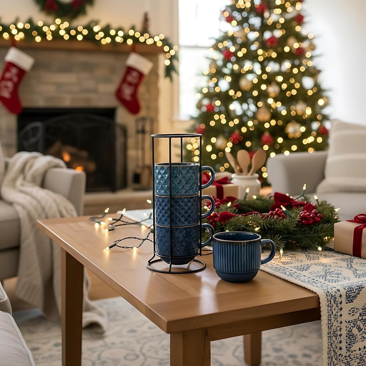 This set of 4 stackable mugs with a stable base design saves valuable counter and cabinet space. Enjoy a non-shaking, easy-to-reach coffee moment from this innovative stand.