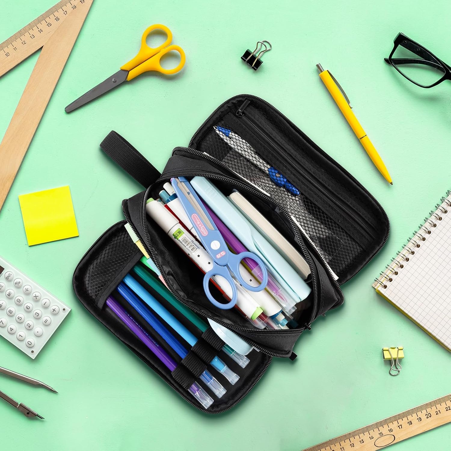 LARGE CAPACITY – This pencil case measures 9.3*4.5*3.5 inches and can easily hold more than 100 pencils. It can also hold multiple types of stationery, such as a 20cm ruler and a calculator. Enough to meet your stationery storage needs