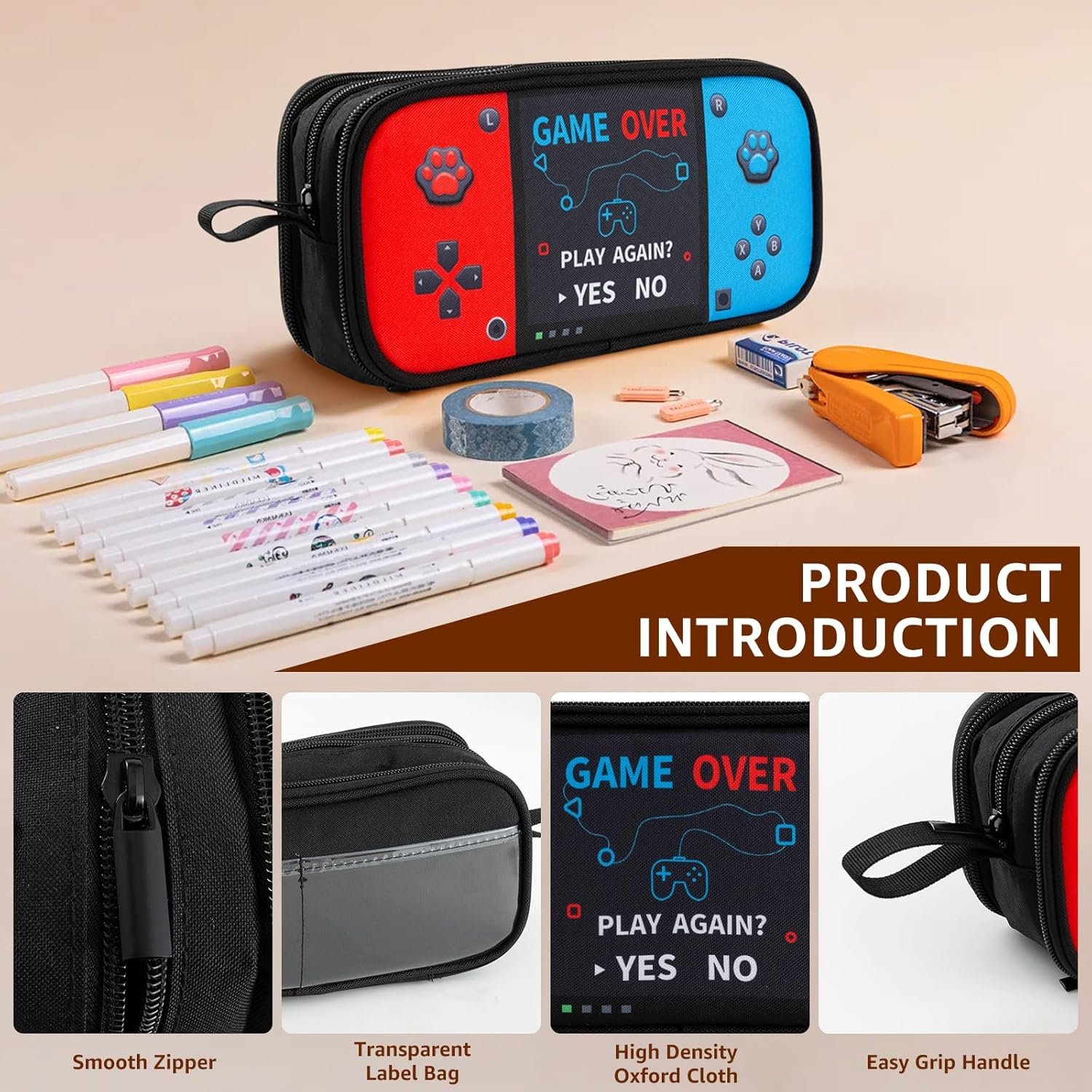REASSURING QUALITY – this pencil case is made of thickened Oxford cloth, which is wear-resistant, waterproof and durable. High-quality four-color printing, bright colors and not easy to fade