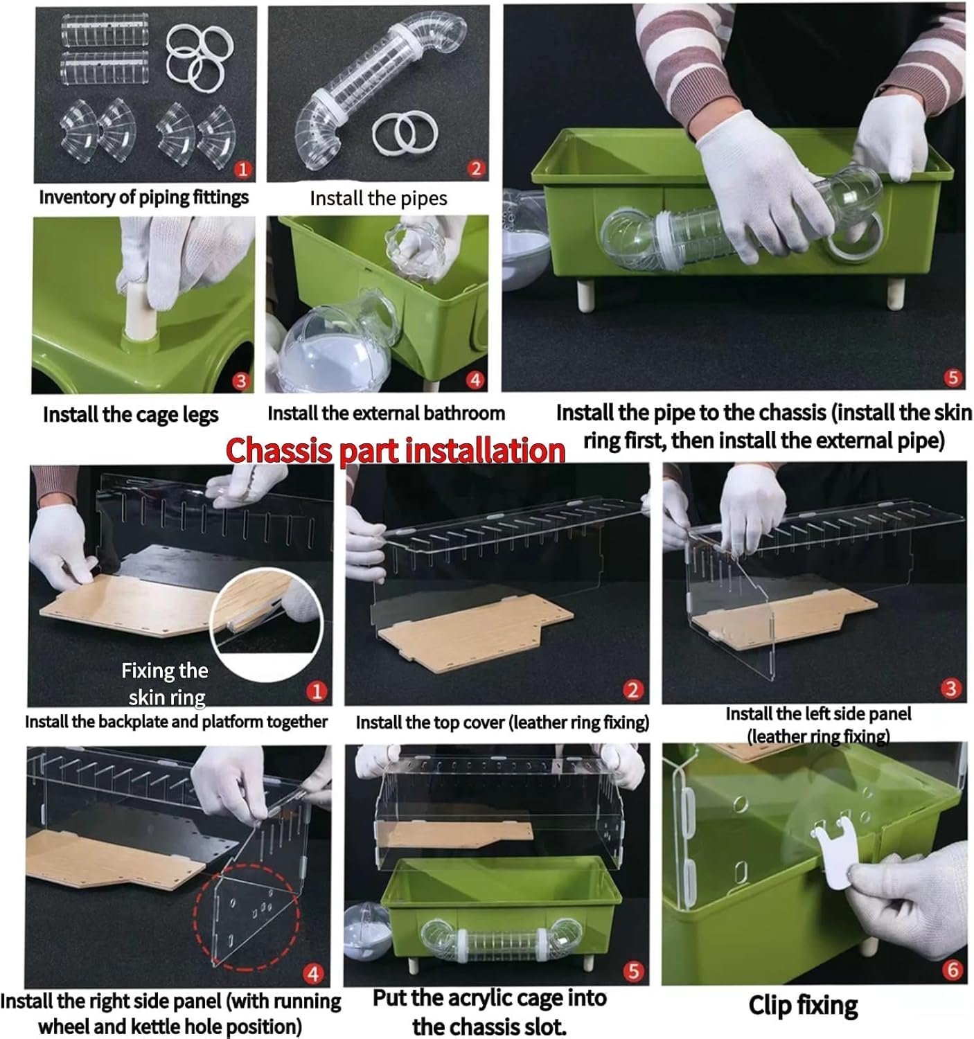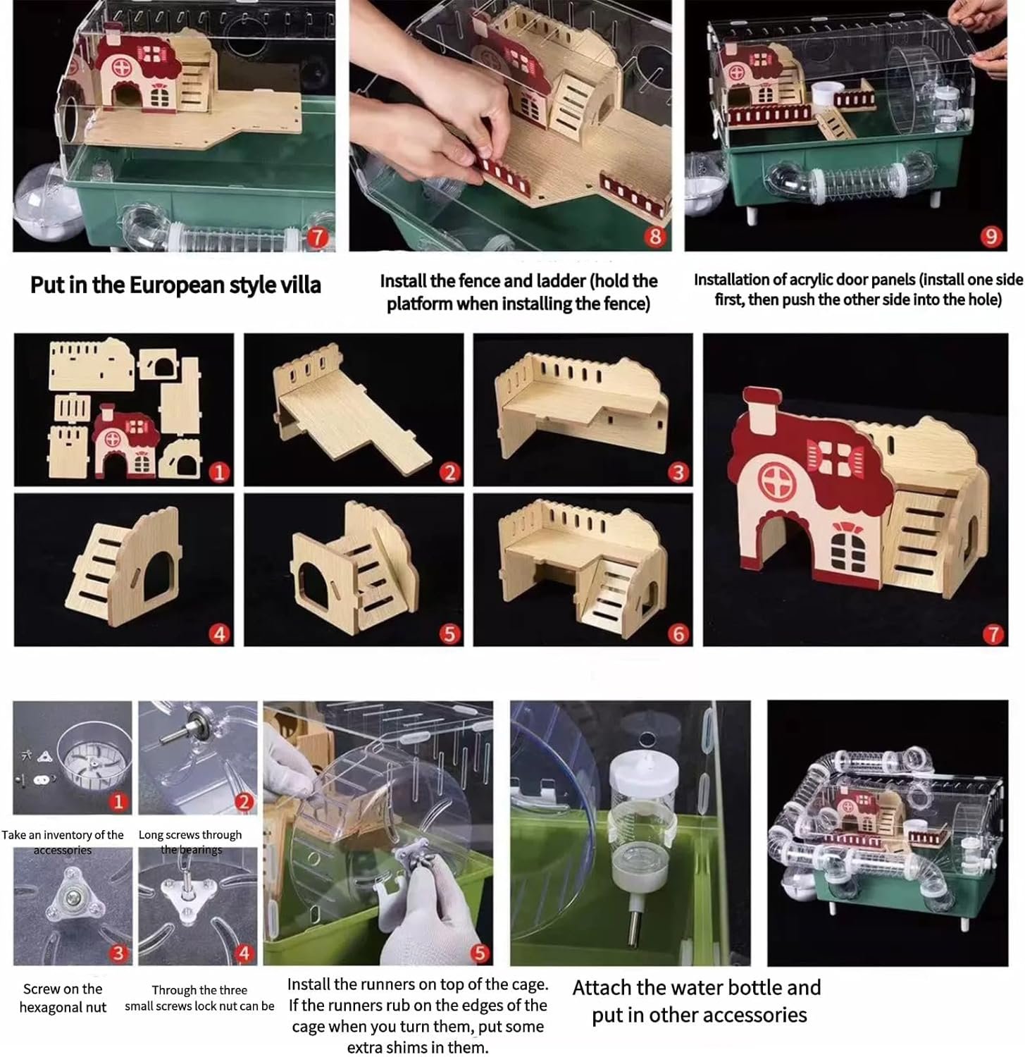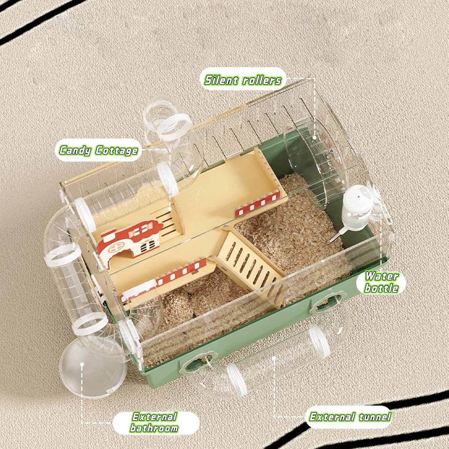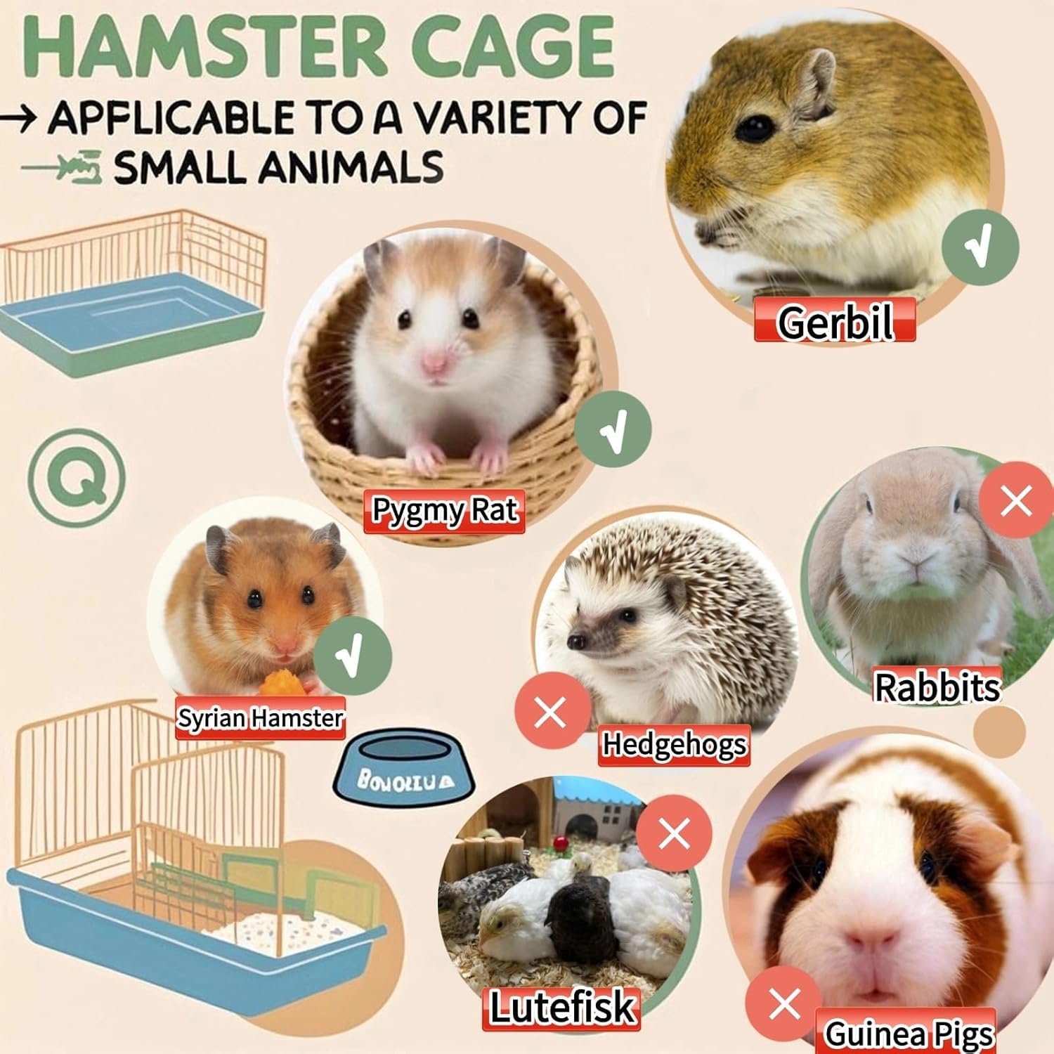 Hassle-Free Cleaning & Customization Removable base tray and wide doors enable quick cleaning. Effortlessly attach hamster houses, wheels, or dwarf hamster accessories without disassembling the main structure.