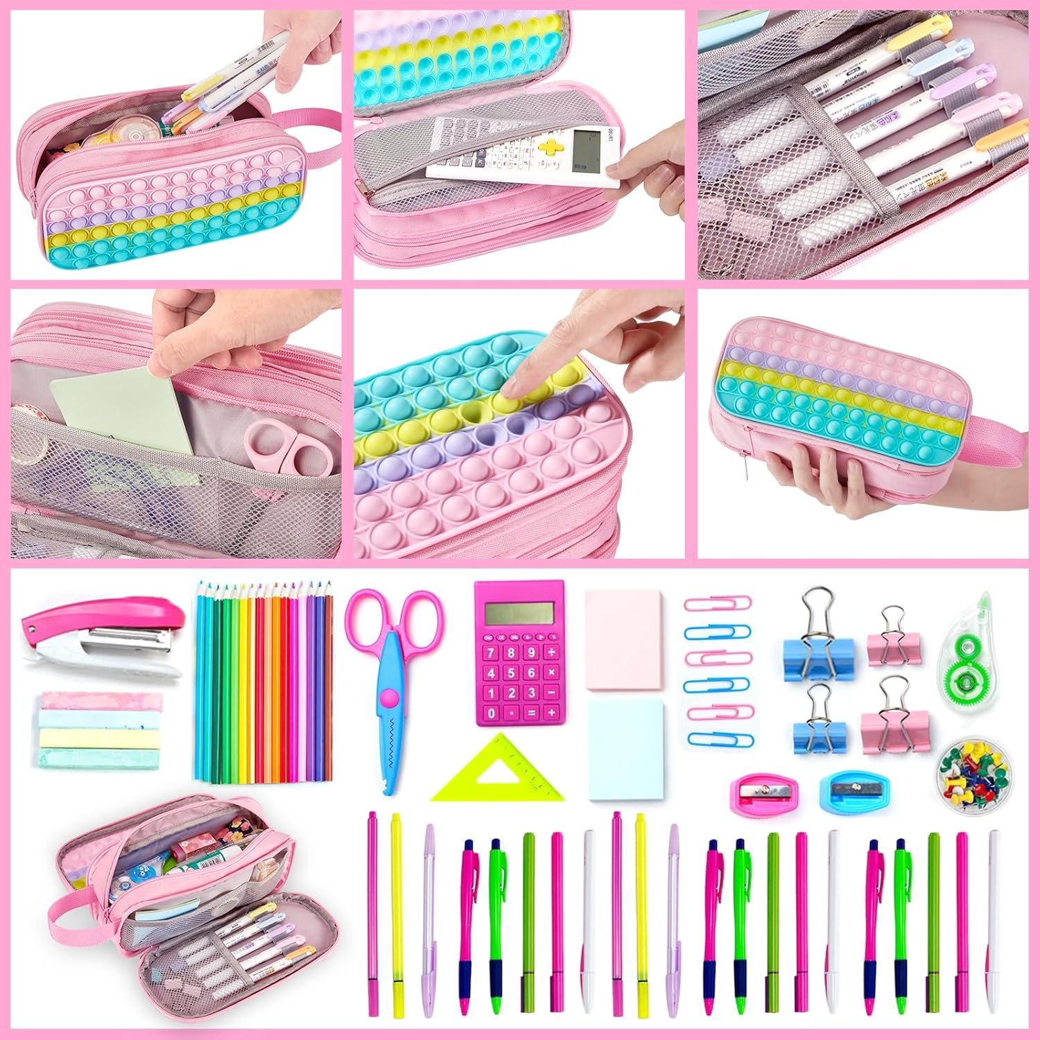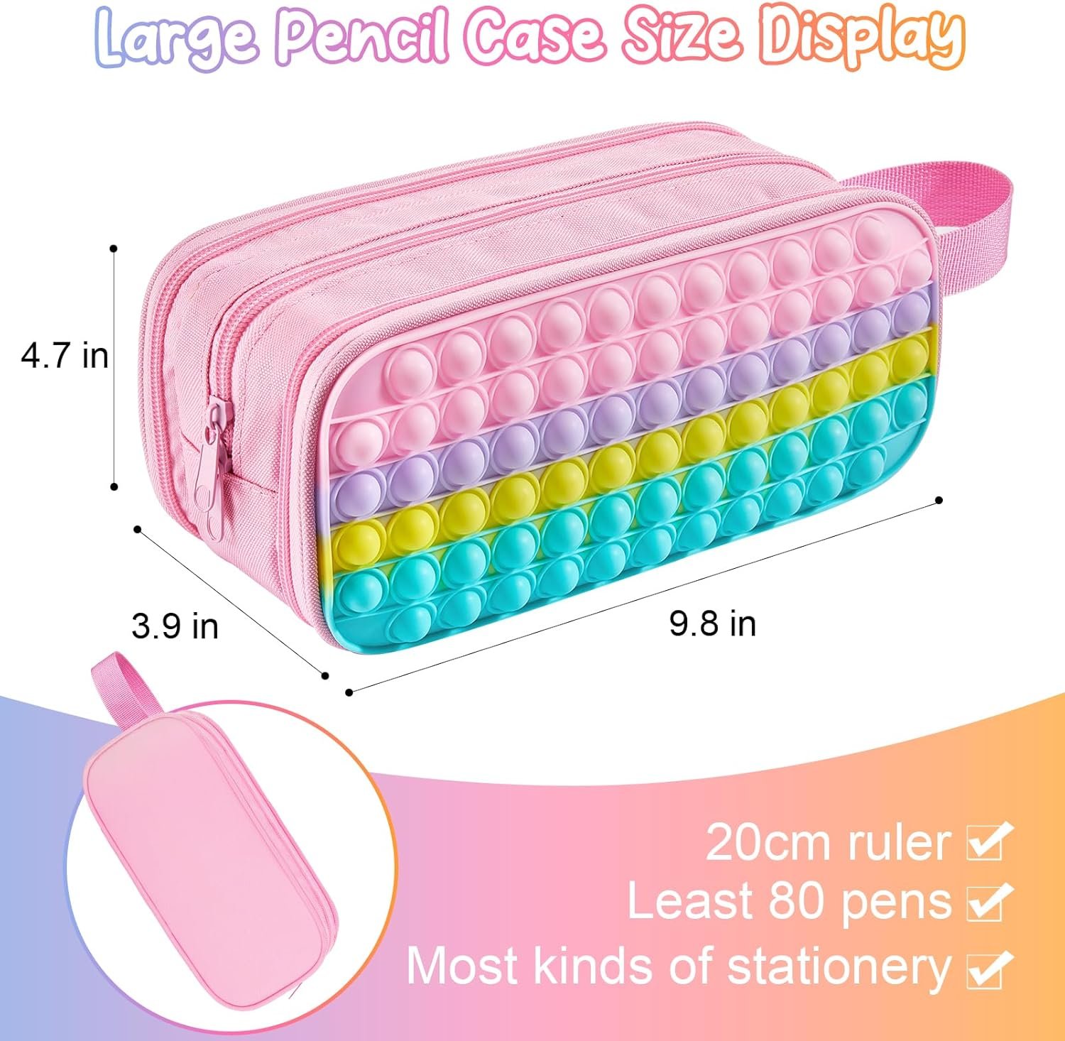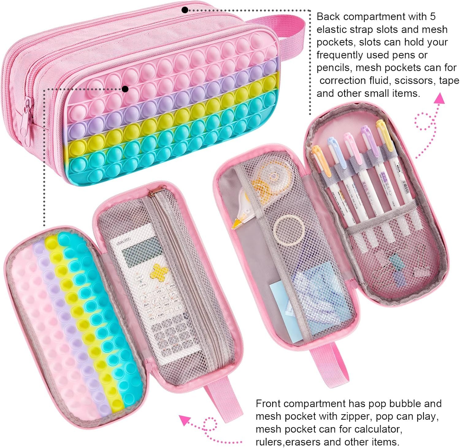 Pencil Case with Pop: The pop you like is now a kid’s school supplies pencil case! The cute and funny pencil case with soft silicone is suitable for kids and adults. The design of the pencil pouch provides a sensory relaxation for kids, providing funny game for two or more children to play the pop. You can also play pop while sketching or traveling to release anxiety, get rid of boredom, and restore your mood