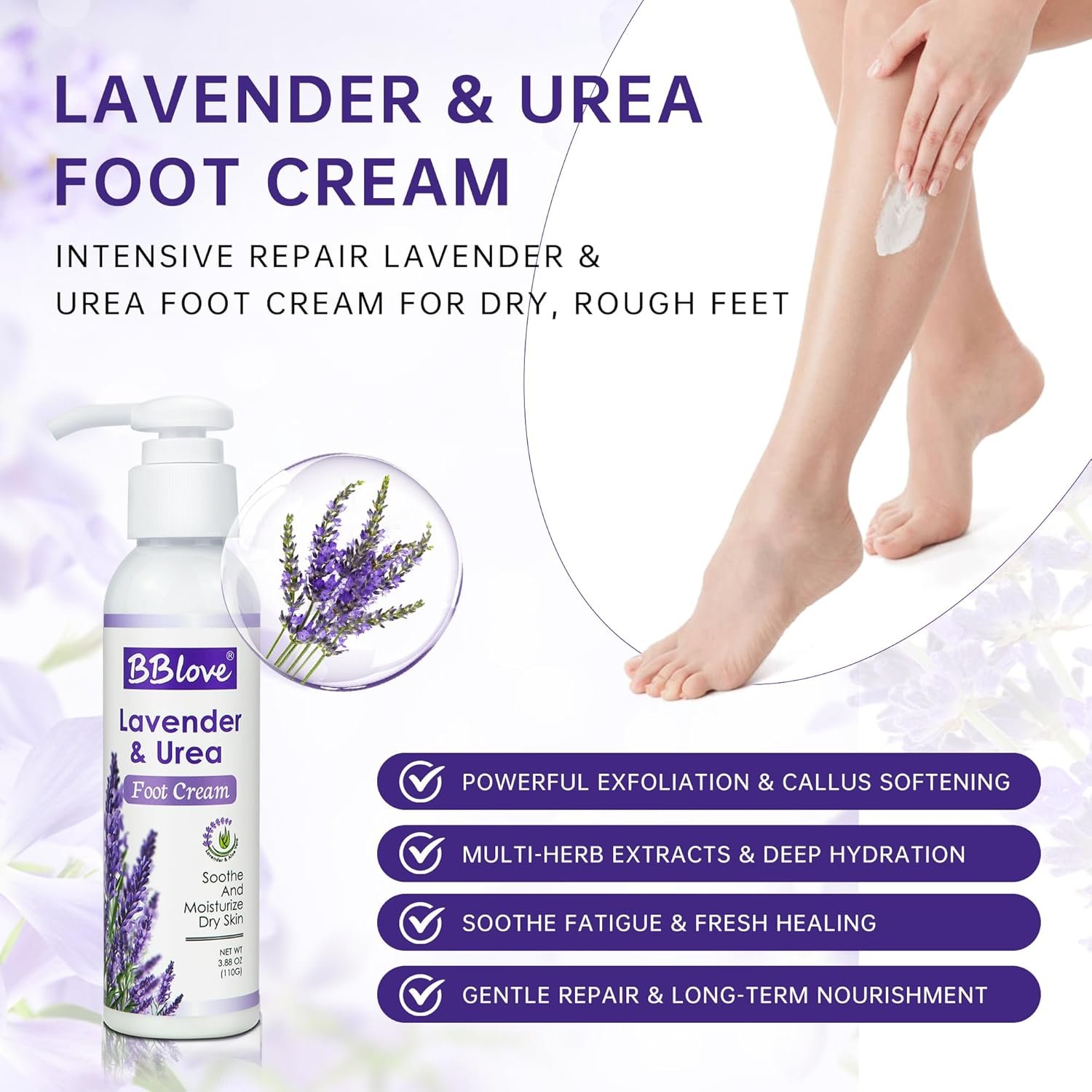 Professional-Grade Foot Care with Nourishing Natural Ingredients:Features high-efficacy ingredients for intense hydration: 10% Urea helps dissolve dead skin cells and lock in moisture, Shea Butter reinforces skin’s natural barrier, and Lavender Oil calms skin while delivering aromatherapy benefits. Gentle enough for daily use – transforms your home into a luxury foot spa for lasting smoothness and crack prevention.