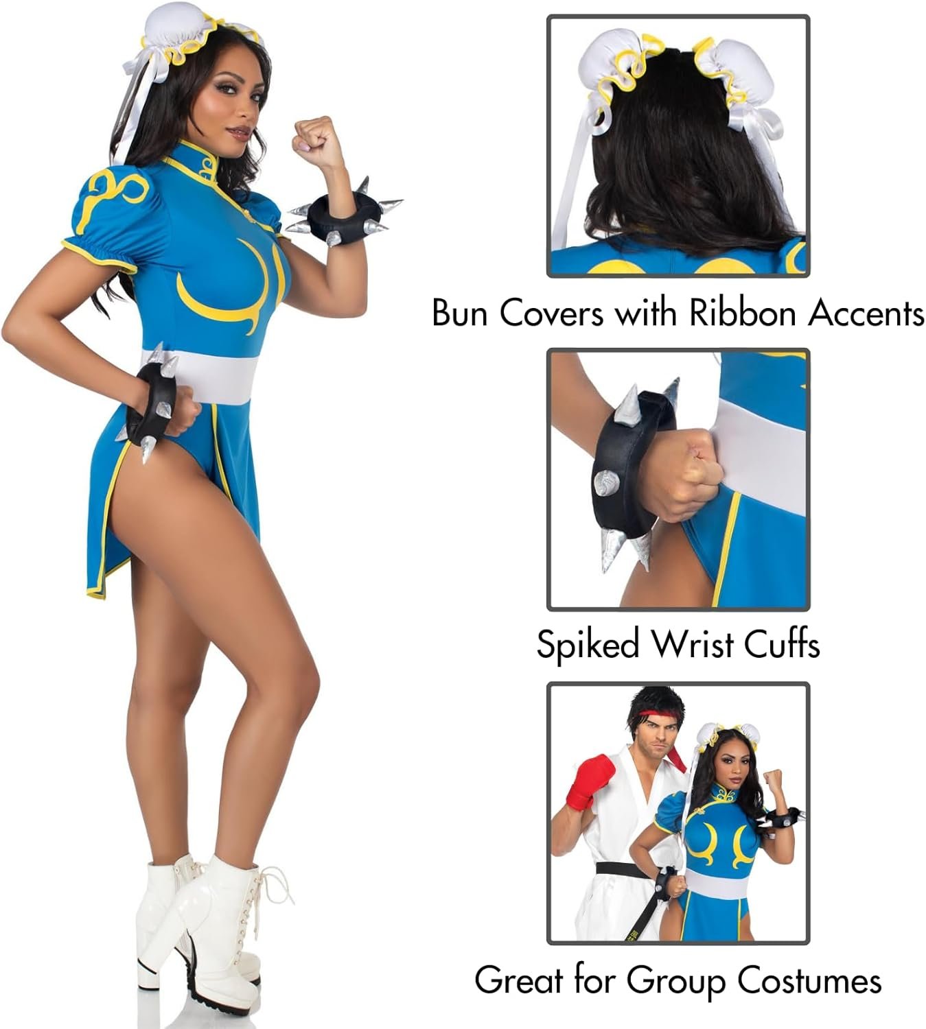 3pc.chun-li,includes romper, bun covers, and bracelets