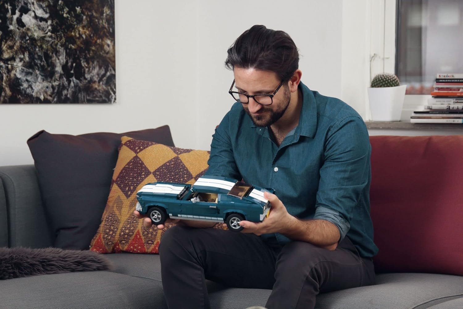 Discover the magic of an iconic 1960s American muscle car with this LEGO Creator Ford Mustang GT model, featuring a hood scoop, printed mustang grille badge, GT emblems and 5-spoke rims with road-gripping tires that was developed with input from Ford. This authentic replica that contains 1471 pieces, comes with optional add-ons for customization, you can even adjust the lift of the rear axle for an extra-mean look! Remove the roof panel or open the doors for access to the detailed interior with handsome seats, radio, working steering and a mid-console gearshift. Store items in the trunk or lift the hood to reveal a detailed big block 390 V8 engine with battery, hoses and air filter detailing. This advanced building set has been designed to provide a challenging and rewarding building experience full of nostalgia and makes a great centerpiece for the home or office. An ideal gift for Ford Mustang fans. Measures over 3” (10cm) high, 13” (34cm) long and 5” (14cm) wide. Contains 1471 pieces.
