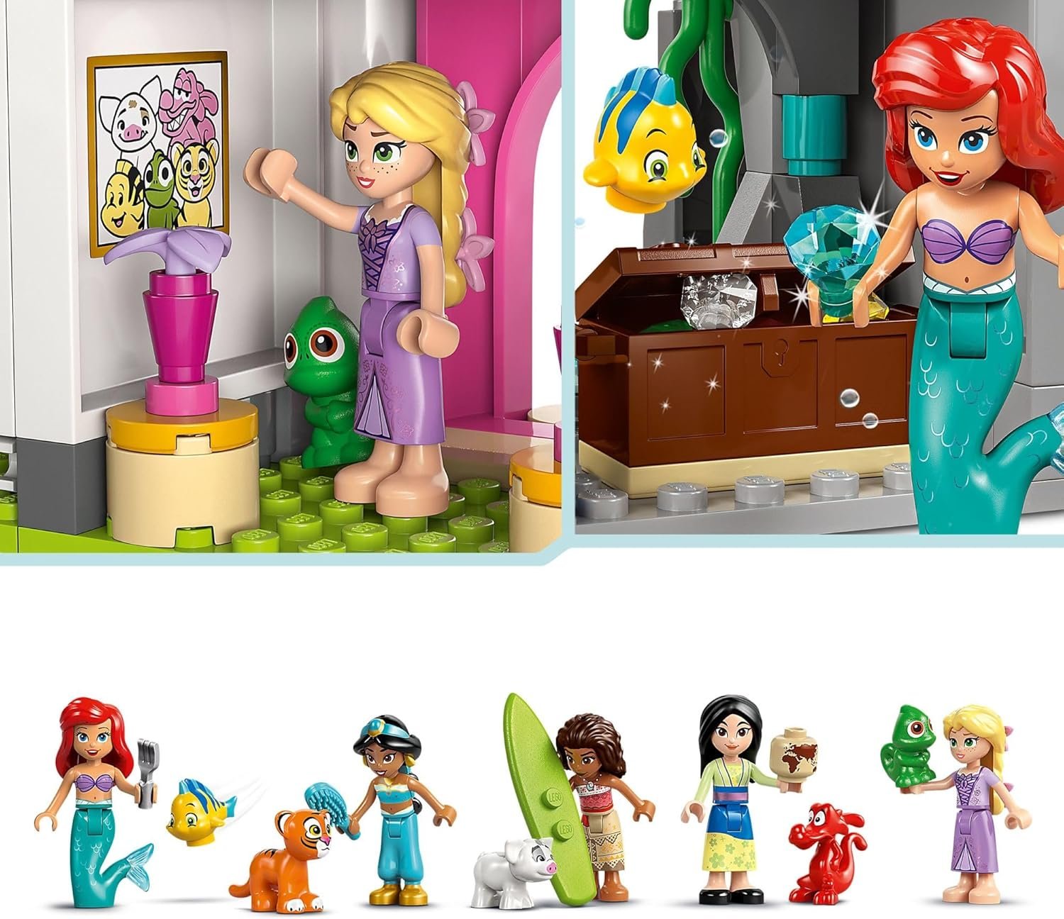 10 DISNEY CHARACTERS – Girls and boys ages 6+ will love playing with Ariel, Rapunzel, Mulan, Jasmine, Moana, plus Flounder, Pascal, Rajah, Pua and the first-ever LEGO Mushu minifigures