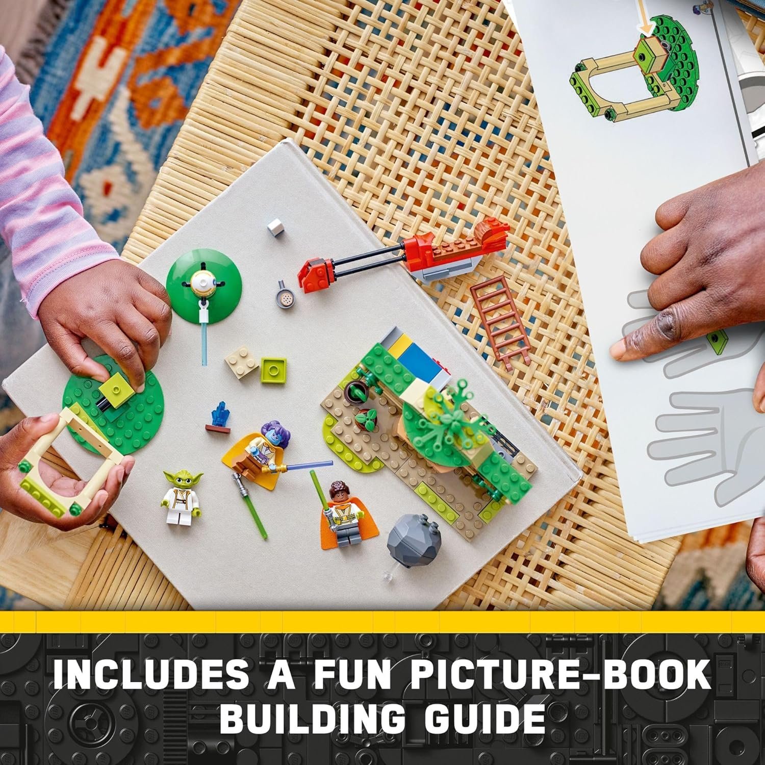 Give young kids ages 4 and up an awesome first experience of building and playing in the LEGO Star Wars universe with this Tenoo Jedi Temple (75358) building toy starter set. The temple has a ‘levitating’ rock function and detailed interior with lots of playful features. The Star Wars toy also features a training droid and balance test for Jedi training, plus a speeder bike. A cool birthday gift for 4 year olds or any Star Wars: Young Jedi Adventures fans, the set also includes new-for-2023 LEGO minifigures of Lys Solay and Kai Brightstar, plus a Master Yoda figure. The simple pictorial instructions are perfect for children who are only just learning to read. For added digital fun, the LEGO Builder app features intuitive zoom and rotate tools that let kids visualize their model as they build. LEGO Star Wars 4+ construction toys are specially designed with Starter Bricks so even first-time builders can construct vehicles, buildings and more with just a little help from an adult or older sibling. Contains 124 pieces.