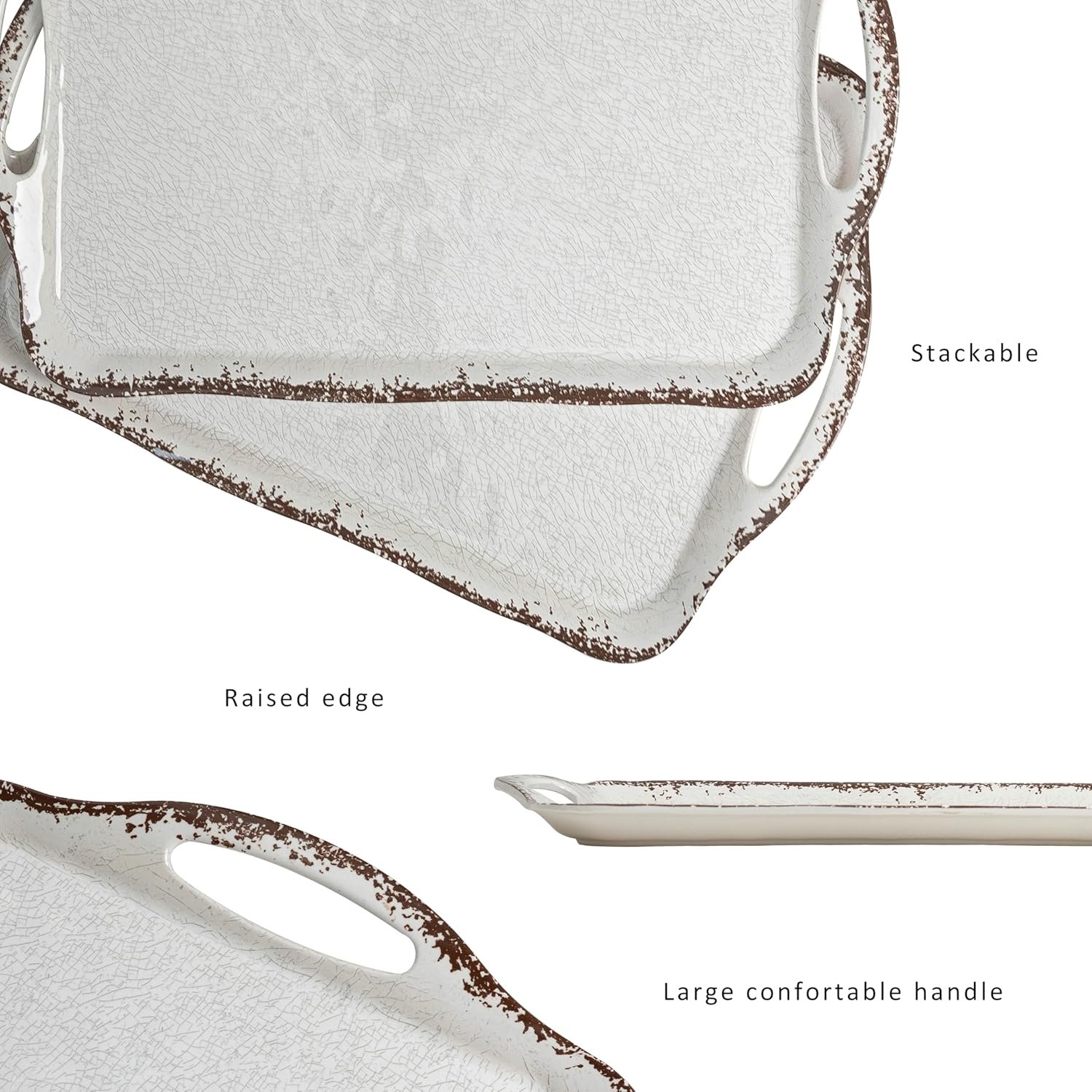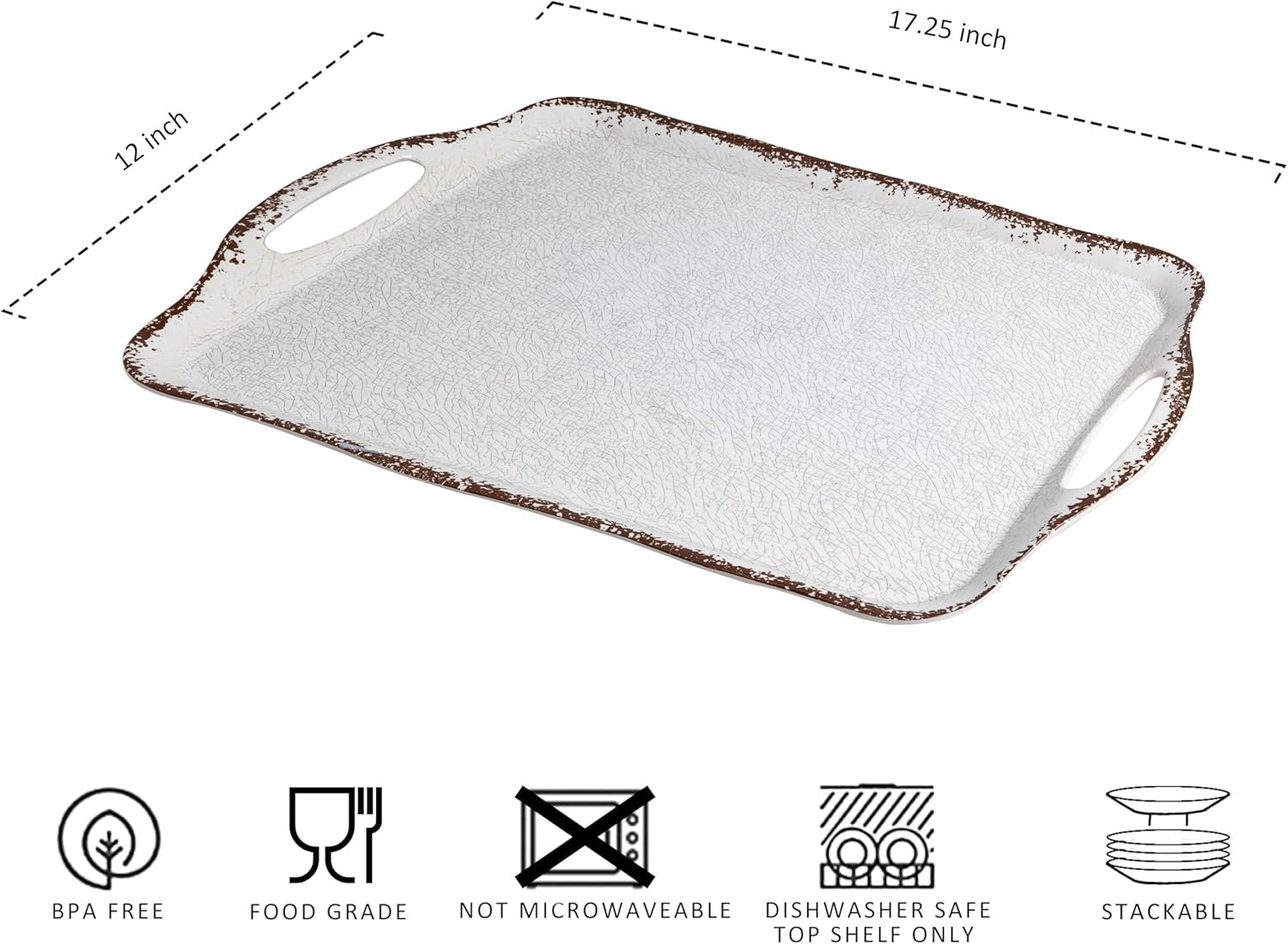 BEAUTIFUL RUSTIC DESIGN: Designed with a crackled surface and rustic edge. Our Melamine serving tray is lightweight and break-resistant than ceramics and glasses, which has a delicate porcelain look and feel.