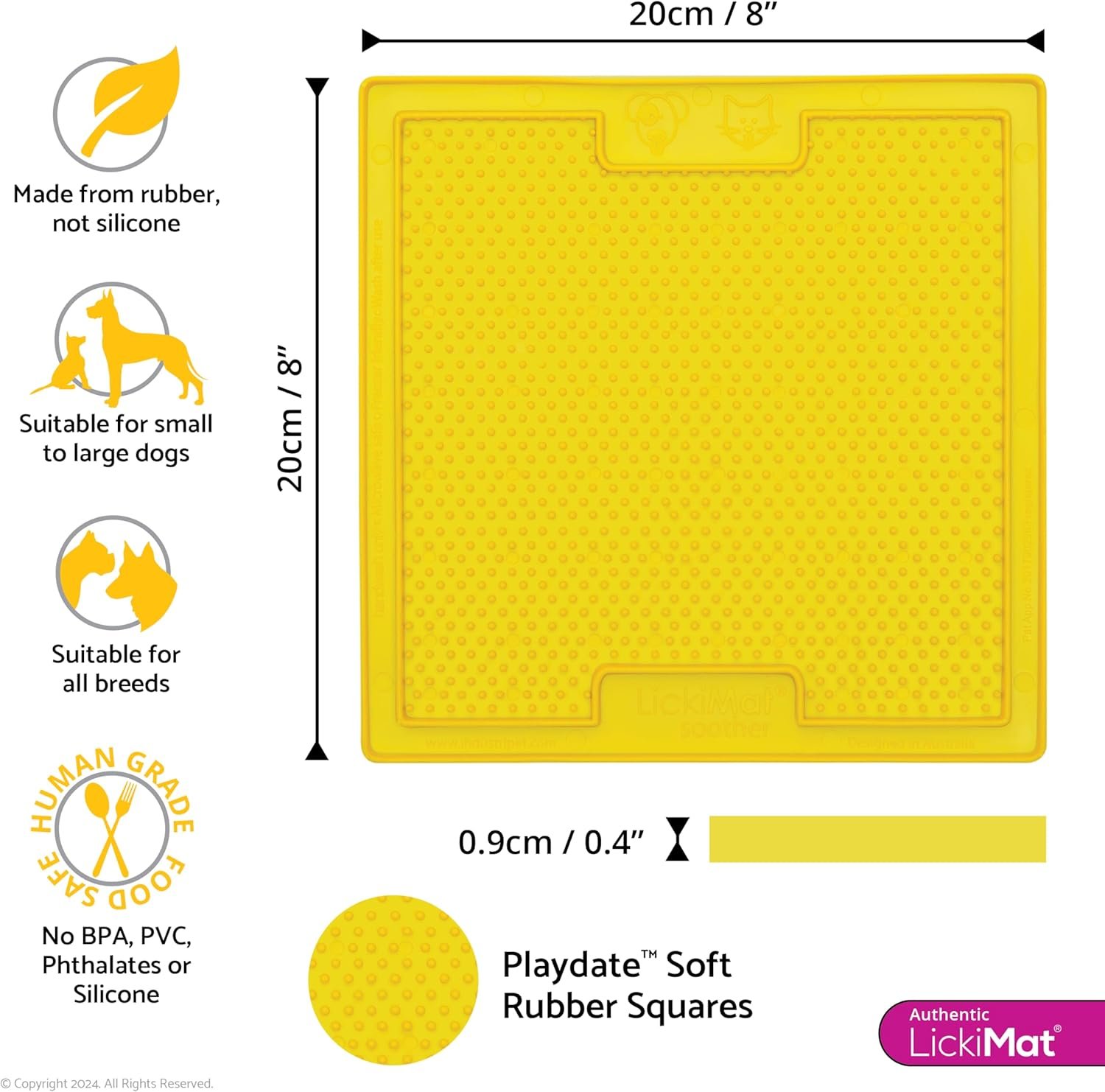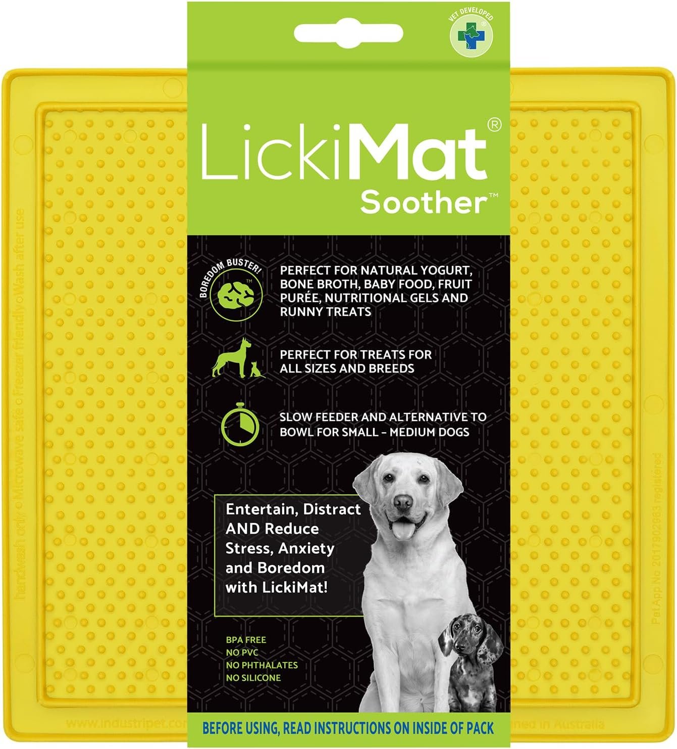 Authentic LickiMat Soother. Perfect for Pet Treats and Runny Foods like Natural Yogurt, Bone Broth and Gravy. Slow Feeder, Healthy and Fun Alternative to a Slow Feed Bowl. Available in a Variety of colors.