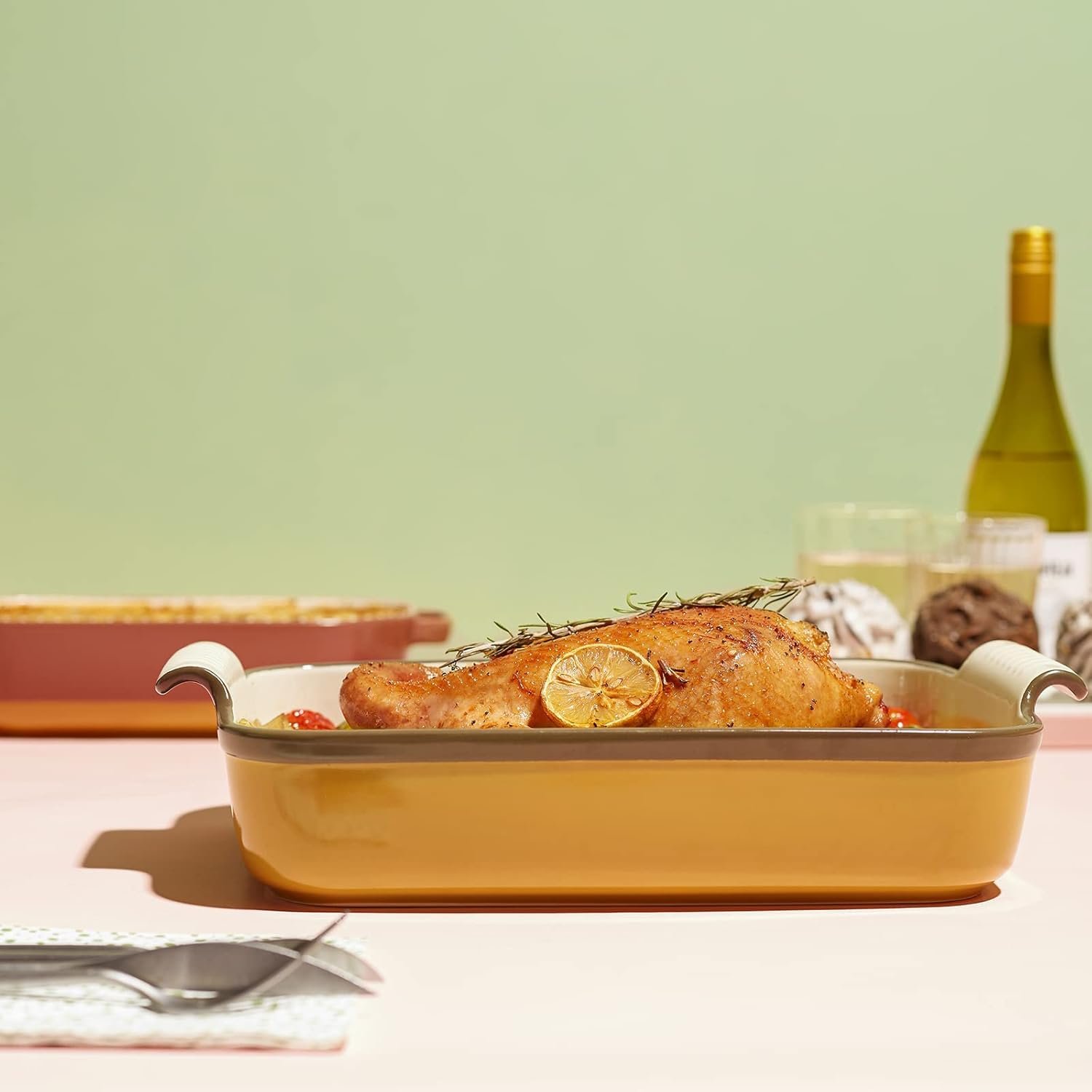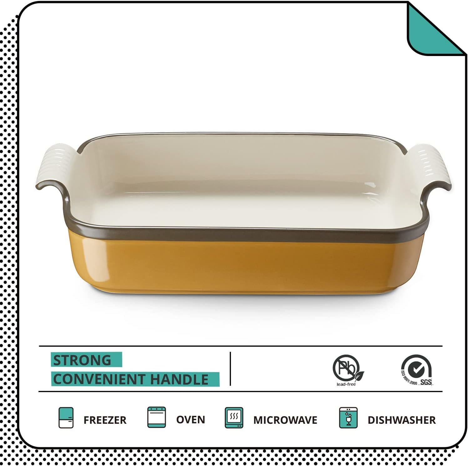 Durability and Safety: Baking Dish is made of durable ceramic. Ceramic baking dish is safe for dishwashers, refrigerators, microwaves, and ovens up to 500°F
