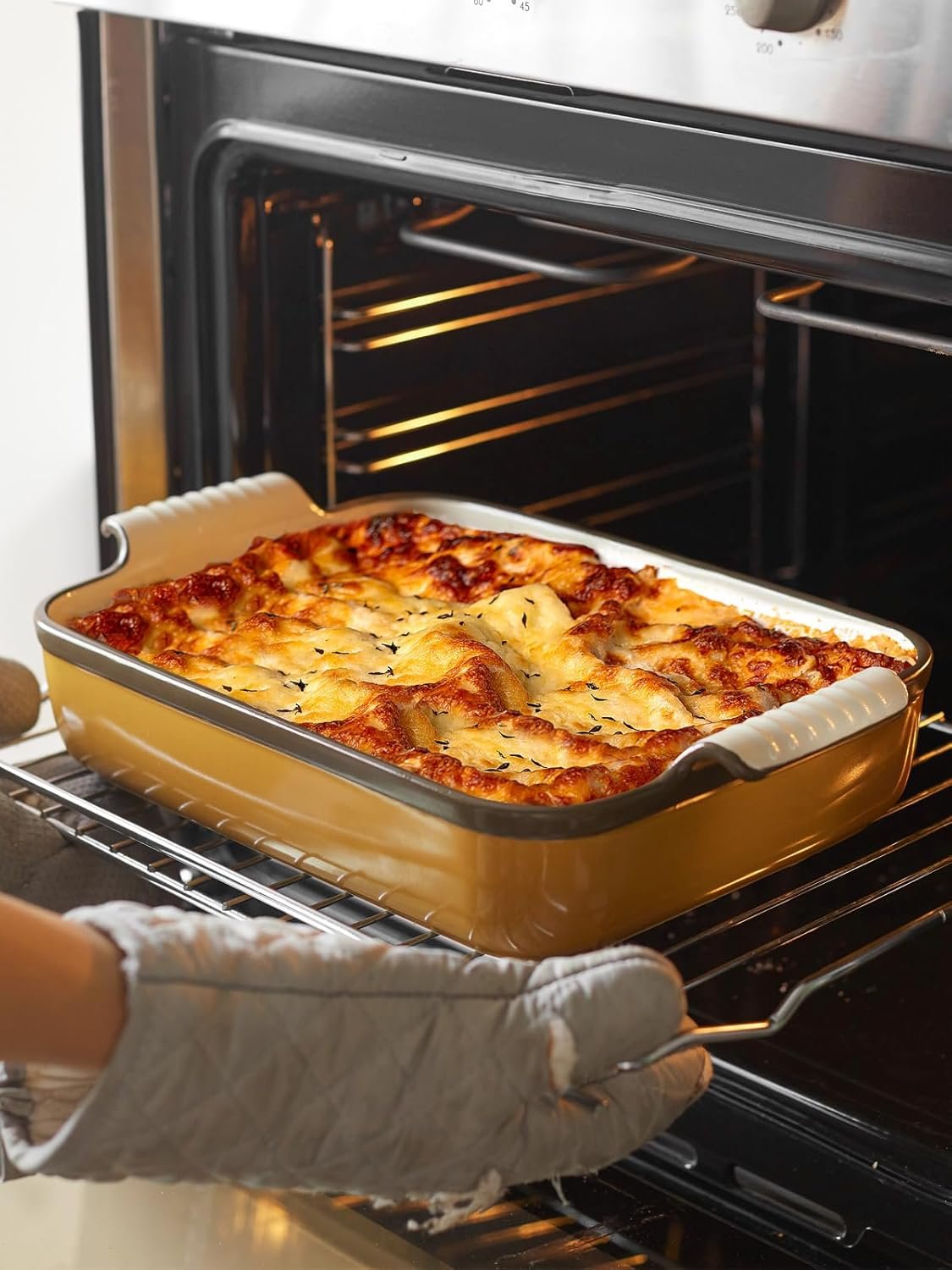 Easy to Stack & Clean: With Quite smooth glaze surface & resists cracking and staining, deep lasagna pan is easy to clean and deep large casserole dish will look new after every use!! 15 inch Baking Dish can be stacked to save space