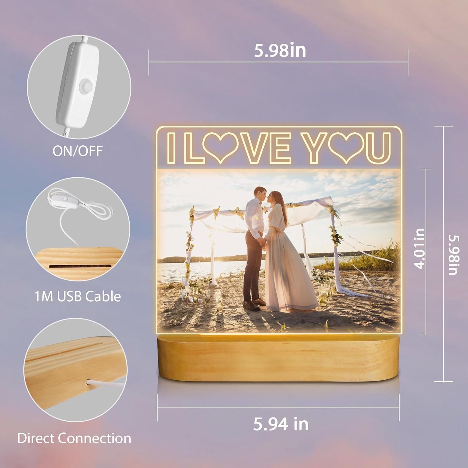 【Creative Gifts for Couple】This would make an awesome present for yourself or a loved one. The photo frame night Light is the best choice to express love and remembrance for couples, girlfriend, boyfriend, wife, husband, him or her, also a good decorative light for the wedding, home, desk, bedside, table and office. Our lovely gifts will allow your fondest memories of that special day to endure