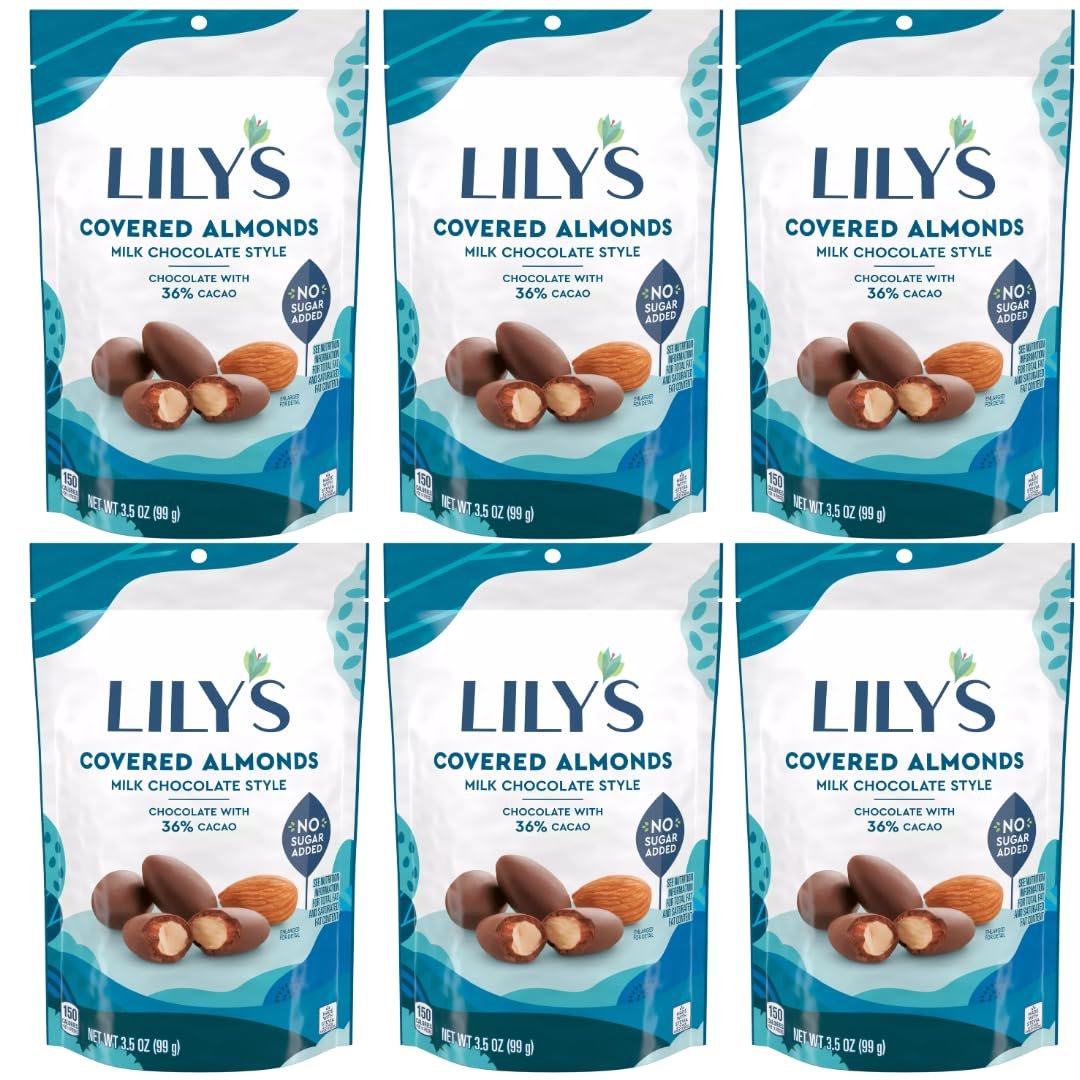 Indulge in the rich, satisfying taste of Lily’s Milk Chocolate Style Covered Almonds, made with 40% cocoa and no sugar added. Each crunchy almond is coated in a creamy, milk chocolate style shell that delivers a deliciously smooth finish without the guilt of added sugar. Sweetened naturally with stevia, this snack offers the perfect balance of flavor and nutrition for those seeking a better-for-you treat. This Pack of 6 is designed for convenience and sharing — ideal for keeping stocked at home, in the office, or on the go. Whether you’re craving a midday pick-me-up, a post-workout snack, or a sweet treat after dinner, these almonds offer a satisfying bite that fits your lifestyle. Lily’s is committed to quality and responsible sourcing. The chocolate style coating is made with Fair Trade cocoa, and the product is Kosher and Gluten-Free, making it a great choice for a wide range of dietary needs. Enjoy the indulgent taste of chocolate with the benefits of mindful ingredients, and make your snack time both delicious and intentional. Perfect for busy professionals, health-conscious families, and chocolate lovers who want to enjoy a sweet treat without the added sugar. Share with friends, pack for travel, or add to gift baskets — Lily’s Milk Chocolate Style Covered Almonds make every moment a little sweeter.