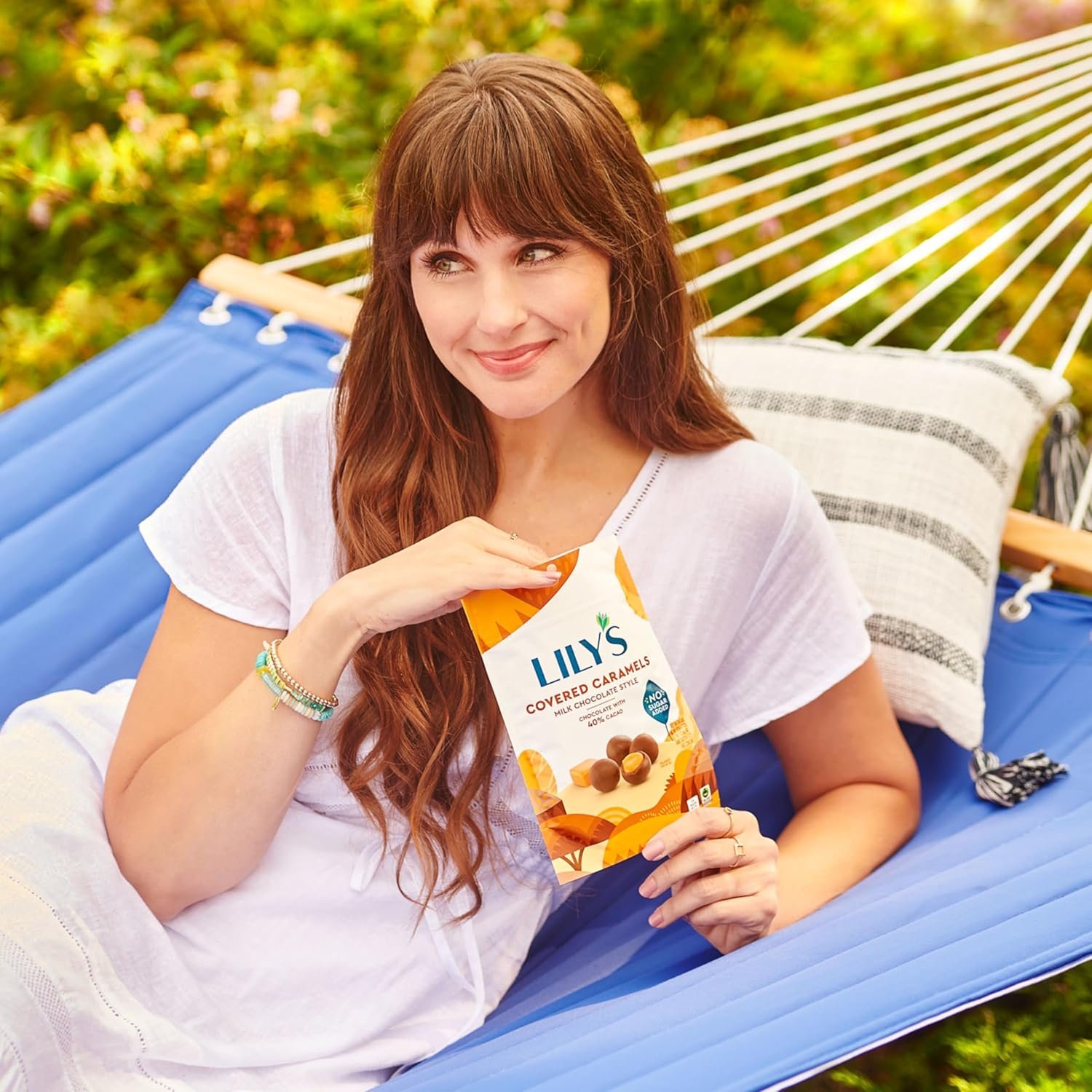 Contains one (1) 3.5-ounce bag of LILY’S Milk Chocolate Style Covered Caramels No Sugar Added Sweets