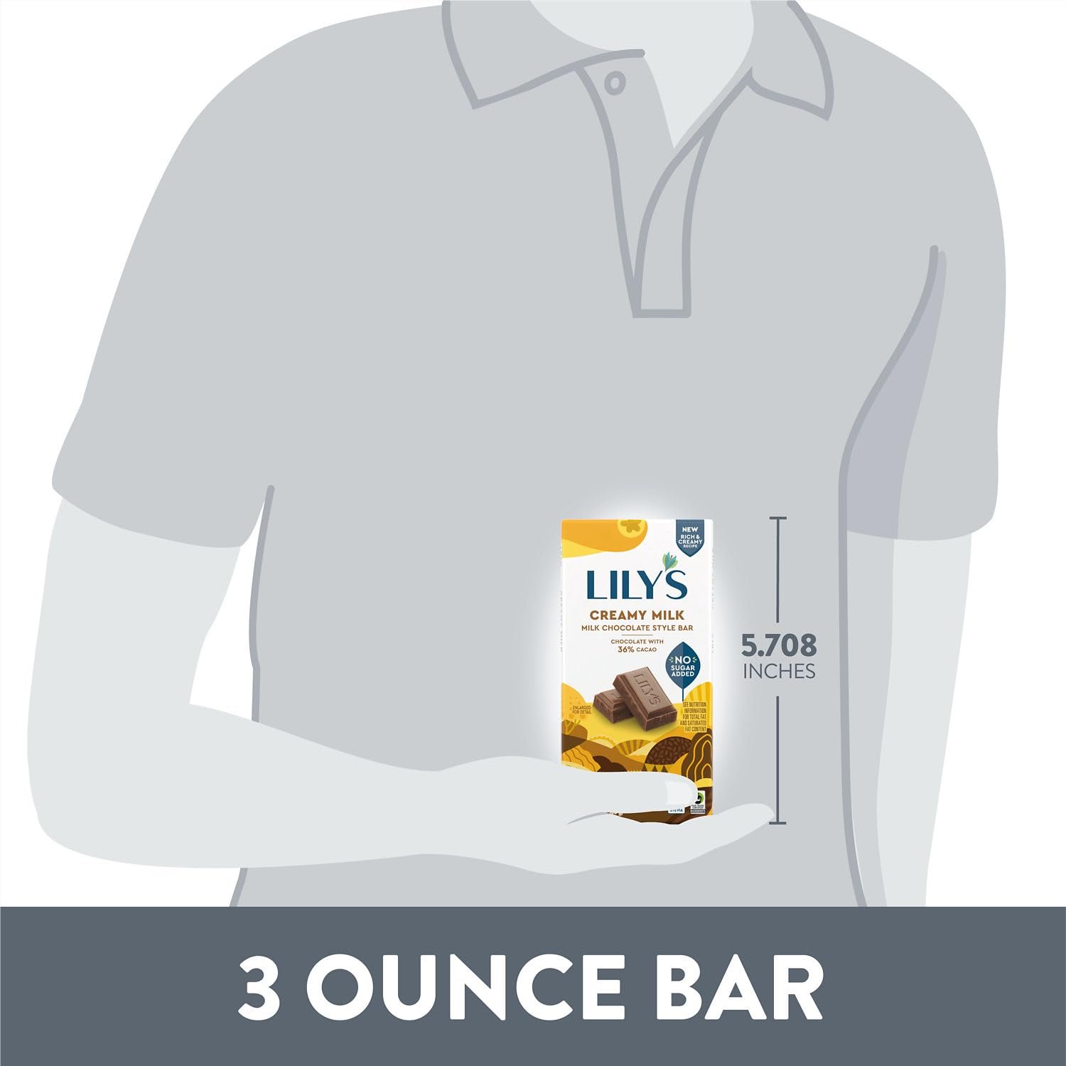 Contains twelve (12) 3-ounce LILY’S Creamy Milk Chocolate Style No Sugar Added Sweets Bars in a bulk box