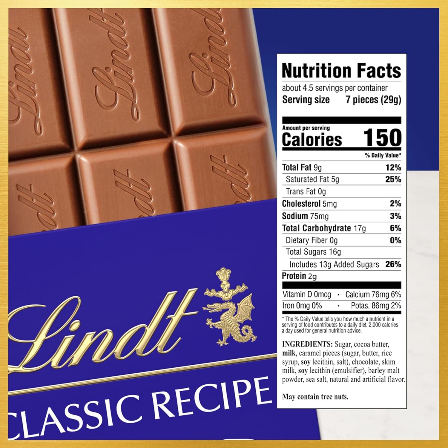 Twelve (12) 4.4 oz. of Lindt CLASSIC RECIPE Caramel with Sea Salt Milk Chocolate Bar