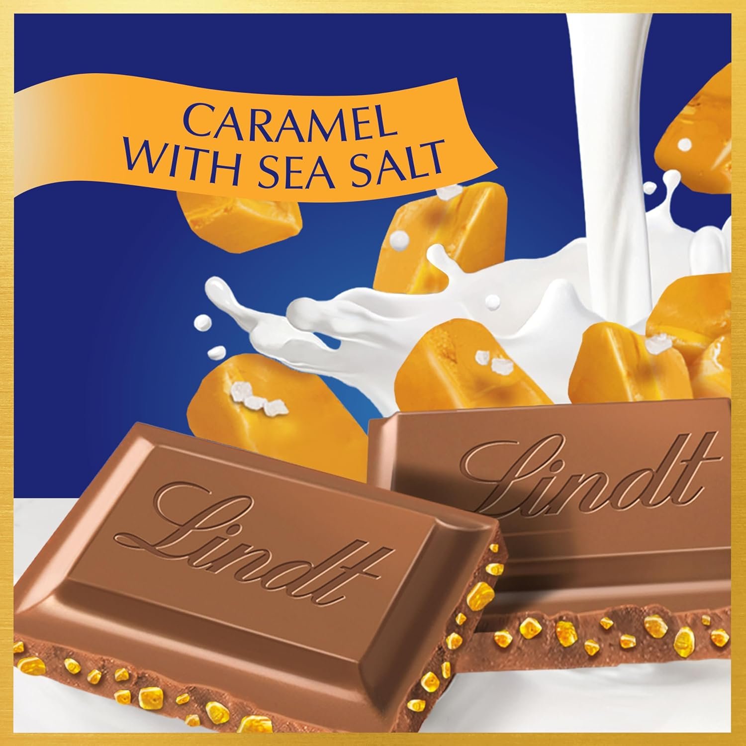 Indulge in the refined taste of a Lindt CLASSIC RECIPE Caramel with Sea Salt Milk Chocolate Bar. Expertly crafted with premium Lindt milk chocolate, this milk chocolate candy bar features pieces of crunchy caramel and sea salt for a delicious combination. Enjoy this indulgent treat after dinner, or use these caramel chocolate bars in your baking for gourmet chocolate desserts. These milk chocolate bars are also perfect as gifts for the chocolate lovers in your life. Each bar is portioned into perfect bite-sized pieces, making it easy to share or enjoy a few pieces anywhere. Lindt chocolate embodies the passion and expert craftsmanship of the Lindt Master Chocolatiers for a distinctly smooth melting chocolate experience in every bite.