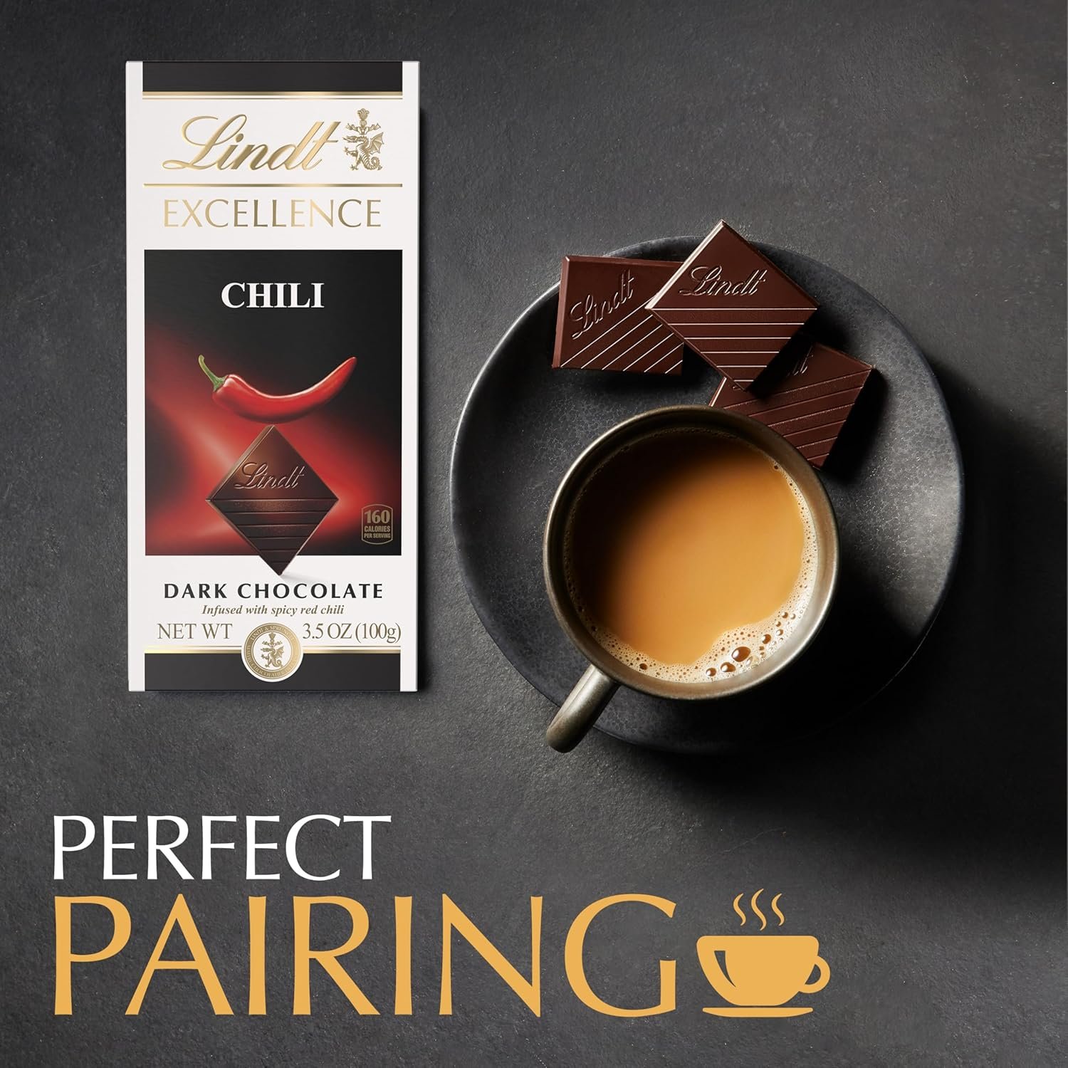 Dive into the refined richness and subtle heat of a Lindt EXCELLENCE Chili Dark Chocolate bar. The fiery flavor of red chili combined with aromatic dark chocolate provides an exhilarating taste experience. Savor this dark chocolate candy bar slowly with a glass of Syrah, or gift this gourmet chocolate to the chocolate connoisseur in your life. Each bite size piece of this Lindt dark chocolate offers balanced complexity. Lindt chocolate is masterfully crafted using the highest-quality ingredients from world-renowned regions, embodying the passion and craftsmanship of Lindt Master Chocolatiers.