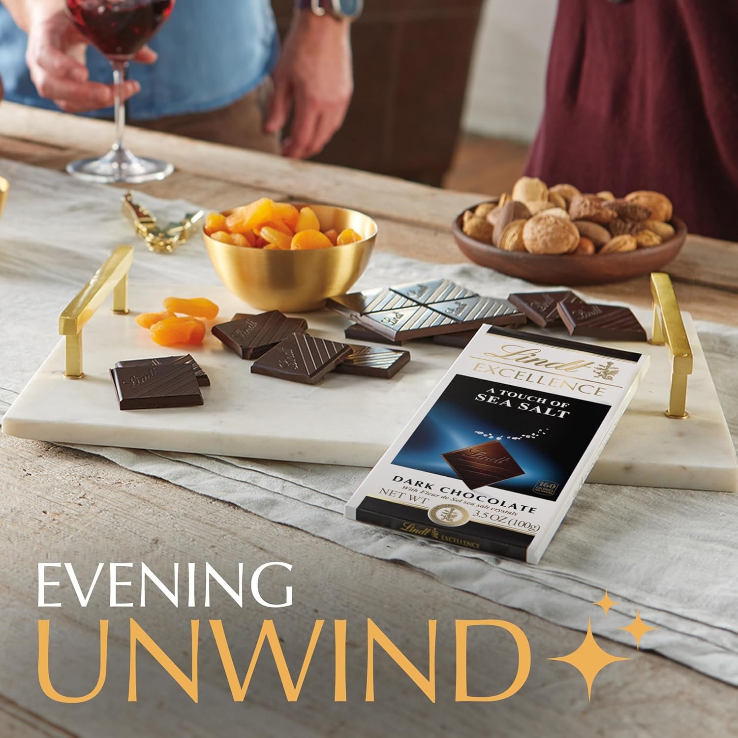 Dive into the refined richness of Lindt EXCELLENCE Sea Salt Dark Chocolate with all your senses. EXCELLENCE Touch of Sea Salt reveals the intensity of dark chocolate and the seasoning of hand harvested sea salt crystals. The sophisticated flavors in this dark chocolate candy bar make this gourmet chocolate the perfect pairing with after-dinner drinks. Give these premium dark chocolate bars as gifts to your favorite chocolate connoisseur, or use them as baking chocolate for extra delicious desserts. This Lindt dark chocolate bar comes portioned into bite size squares, ensuring balanced complexity in each bite. Lindt chocolate is masterfully crafted using the highest-quality ingredients from world-renowned regions, embodying the passion and craftsmanship of Lindt Master Chocolatiers.