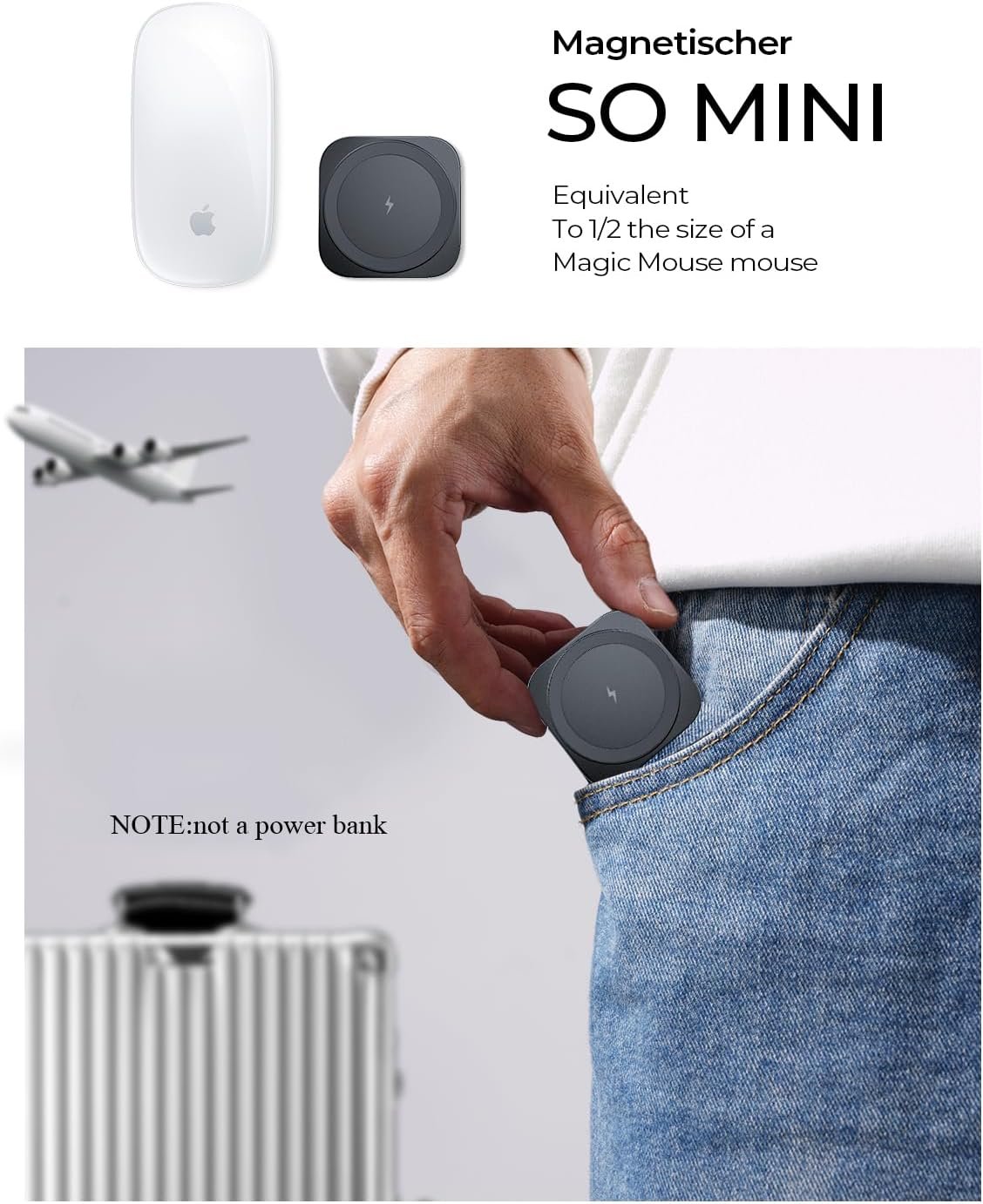 【Ultra Portable, Essential for Travel】- It retains the advantages of the MagSafe charging stand while taking slim and portable design to the extreme. Its size is similar to AirPods 3, making it easy to slip into your pocket anytime, anywhere. Once powered, it conveniently charges your Apple Watch and iPhone 15 Pro Max during your travels and can double as a phone stand, preventing low battery alerts during movie watching and video calls on the go. Note: This is not a power bank