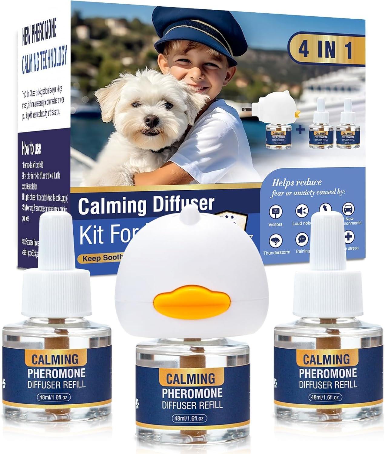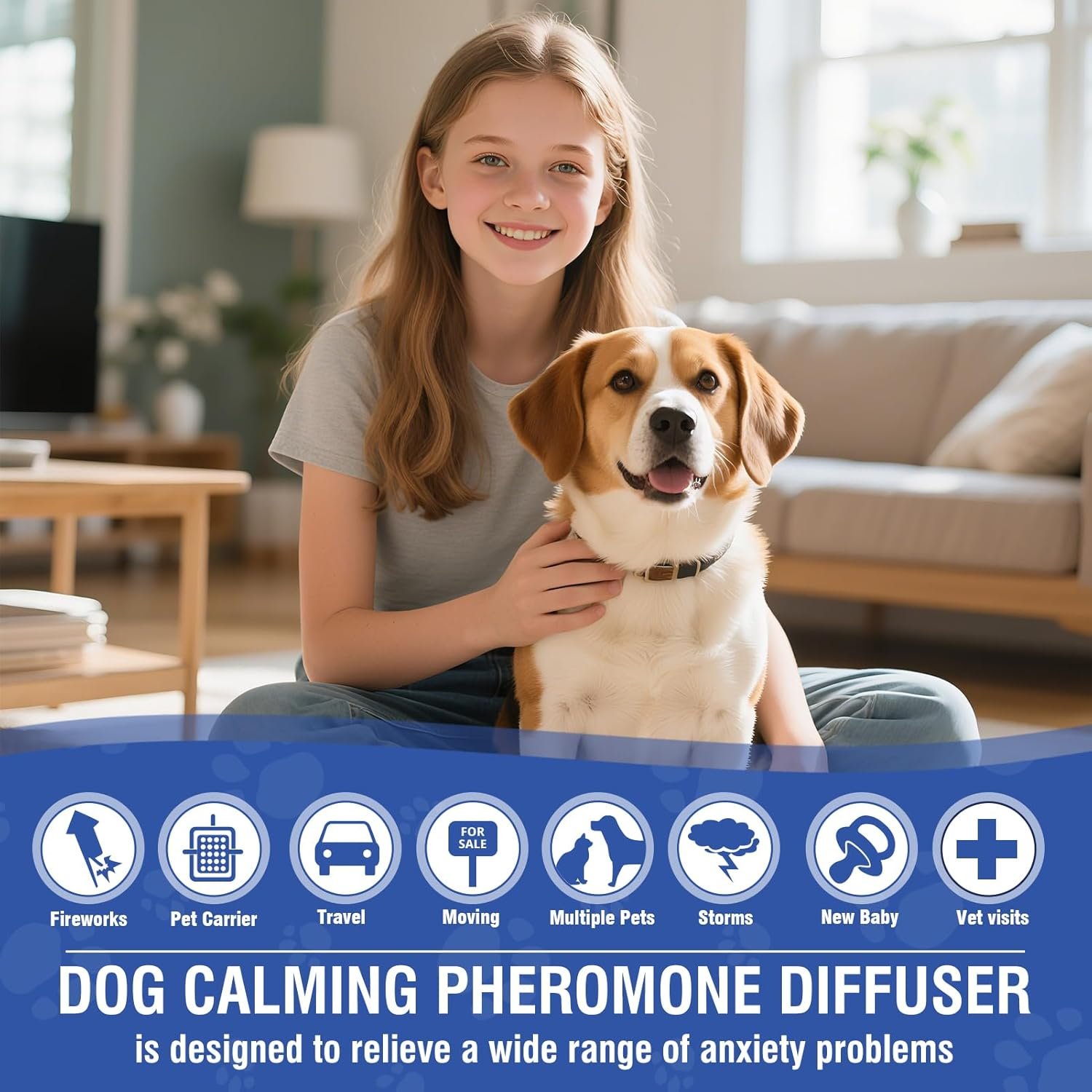 【4 IN 1 Diffuser Kit- Veterinary Recommendation】The diffuser refill kit includes 1 diffuser head, 3 x 48ml tasteless refills, enough to keep your home filled with tranquility. Broad, gentle and long-lasting, calming plug is ideal for helping dogs reduce stress and is personally recommended by thousands of veterinarians. Dog calming diffuser plug in is designed to provide dog care for your dog, help your dog get rid of anxiety, calming dog diffuser brings a deeper sense of calm