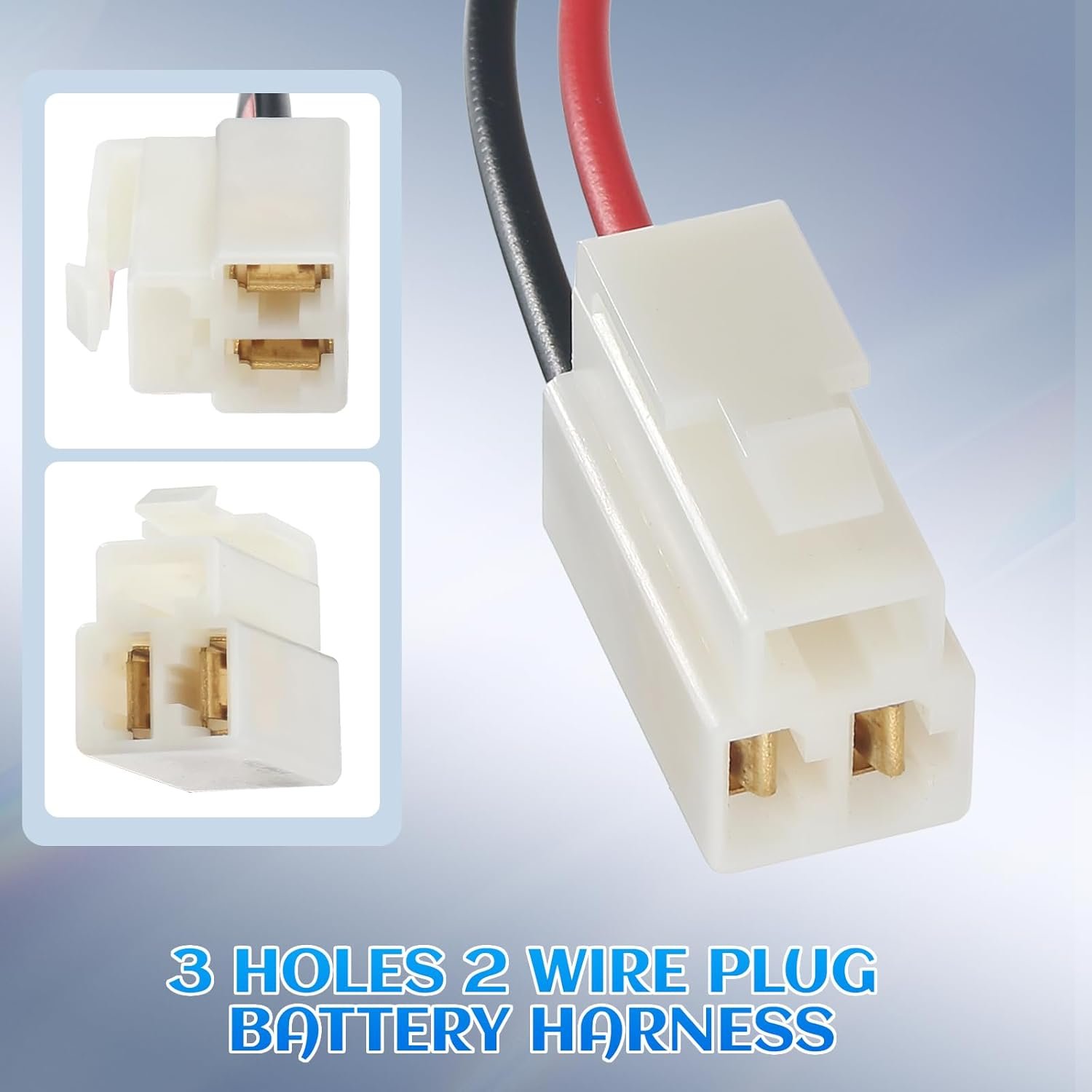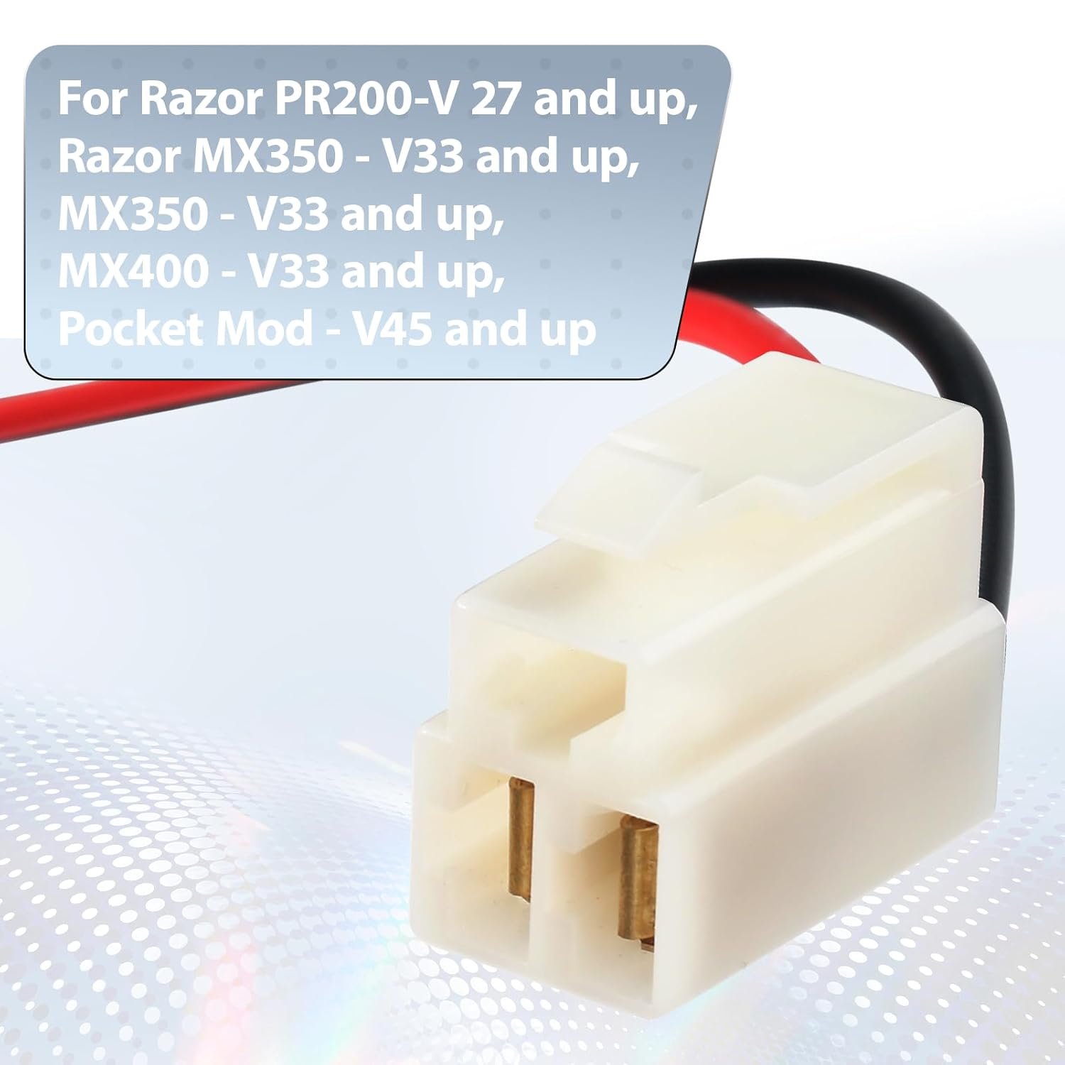 Compatibility: 3 Holes 2 Wire Plug Battery Harness for Razor PR200-V 27 and up, Razor MX350 – V33 and up, MX350 – V33 and up, MX400 – V33 and up, Pocket Mod – V45 and up