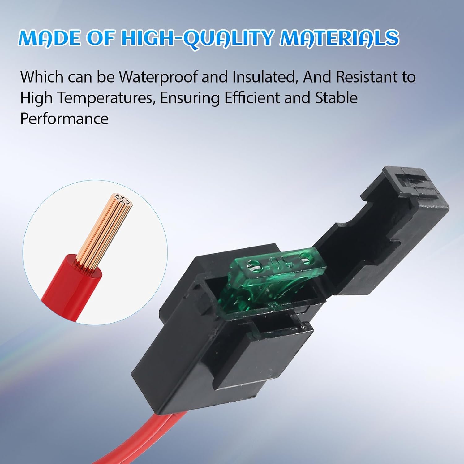 Harness Specifications: It contains a 30 cm connector harness and a 15 cm fuse harness