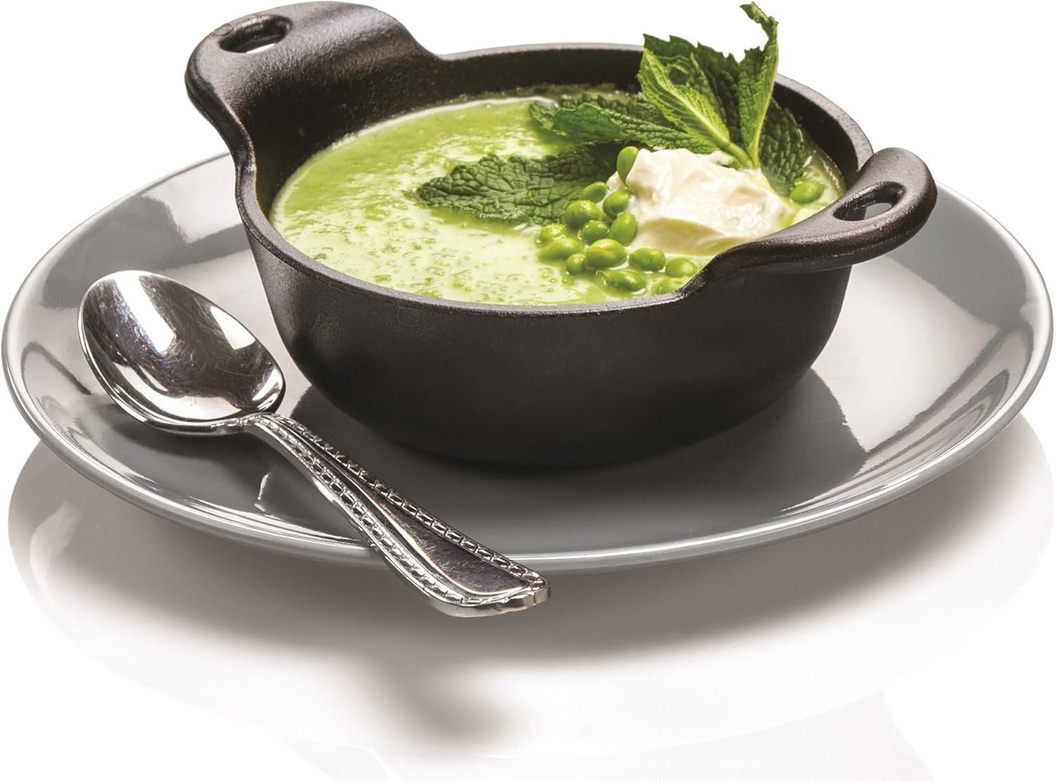 Continuing the tradition of innovation and quality, Lodge introduces the new Heat Enhanced and Seasoned cast iron. Lodge’s premium iron is taken through a patented heat-treating process that inhibits rust growth, keeping your cookware maintenance worry-free. Use the 12-ounce mini serving bowl to create the perfect appetizer, dessert, sauce or specialty entree. With graceful rolled edges and curved lines the Lodge mini tableware offers a new design in cast iron cookware. Use as a serving dish to deliver delicious appetizers hot out of the oven. Or chill the cast iron server in the refrigerator to keep foods cold and fresh while being served. And like our cast iron cookware, this pan is seasoned at the Foundry with our proprietary vegetable oil formula, providing an easy release oil finish that improves with use. Cast iron is unparalleled in heat retention and even heating. For use at home in the oven, on the stove, on the grill or over the campfire. Cleaning is easy, simply hand wash, dry and rub with cooking oil. Made in the USA.