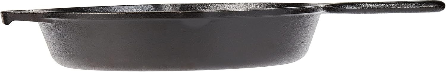 The Lodge Cast Iron Chef Skillet is designed for the gourmet, with sloped sides and a traditional teardrop handle. Great for making omelets or cornbread. Utilize multiple cooking techniques – sauteing, frying, stir-frying, searing and baking on the stovetop, in the oven, and over fires for endless recipes. 10-inch diameter. Hand wash only.