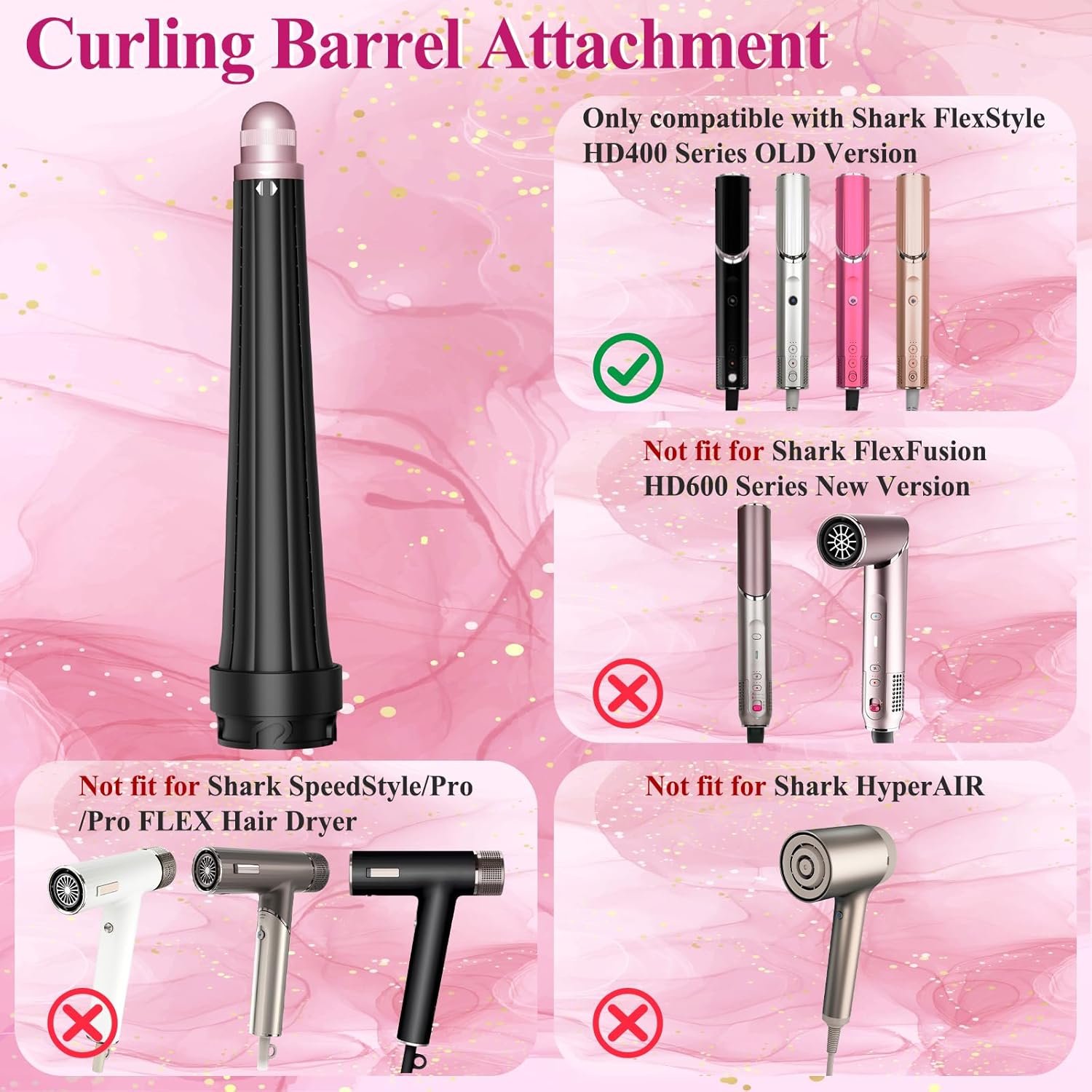 Versatile Compatibility: This long barrel curling attachment for Shark FlexStyle HD400 Series. Not Compatible with Shark FlexFusion HD600 Series. Not Compatible with Shark SpeedStyle/Pro/Pro FLEX Hair Dryer