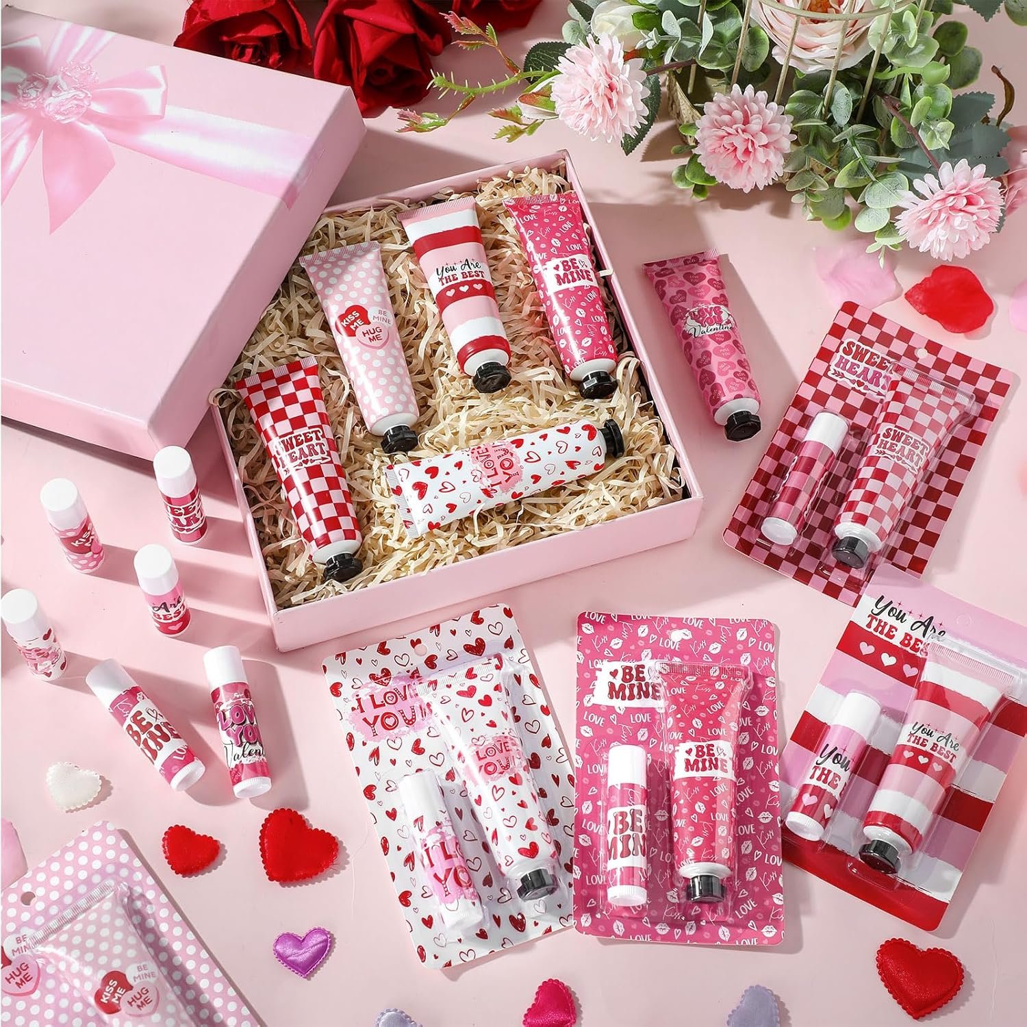 Create 36 Lovely Gift Sets with Ease: this Valentine’s Day care package includes 36 mini hand creams, 36 lip balms, and 36 beautifully designed back cards, perfect for creating multiple adorable gift sets! Whether for friends, coworkers, teacher, or yourself, you can easily assemble thoughtful gifts that spread love and care