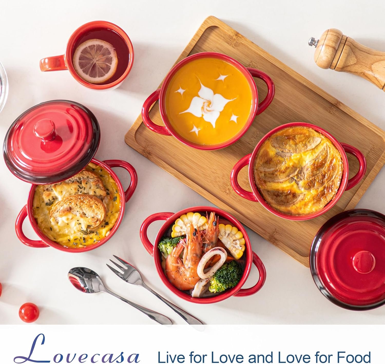 【Stackable and Save Space】Our Mini Ceramic Cocotte set are stackable, so you won’t waste your kitchen space and say goodbye to messy cupboard space. Stable and not prone to tipping,The lid can be independently leaned next to the bowl, saving more cupboard space and making storage safer