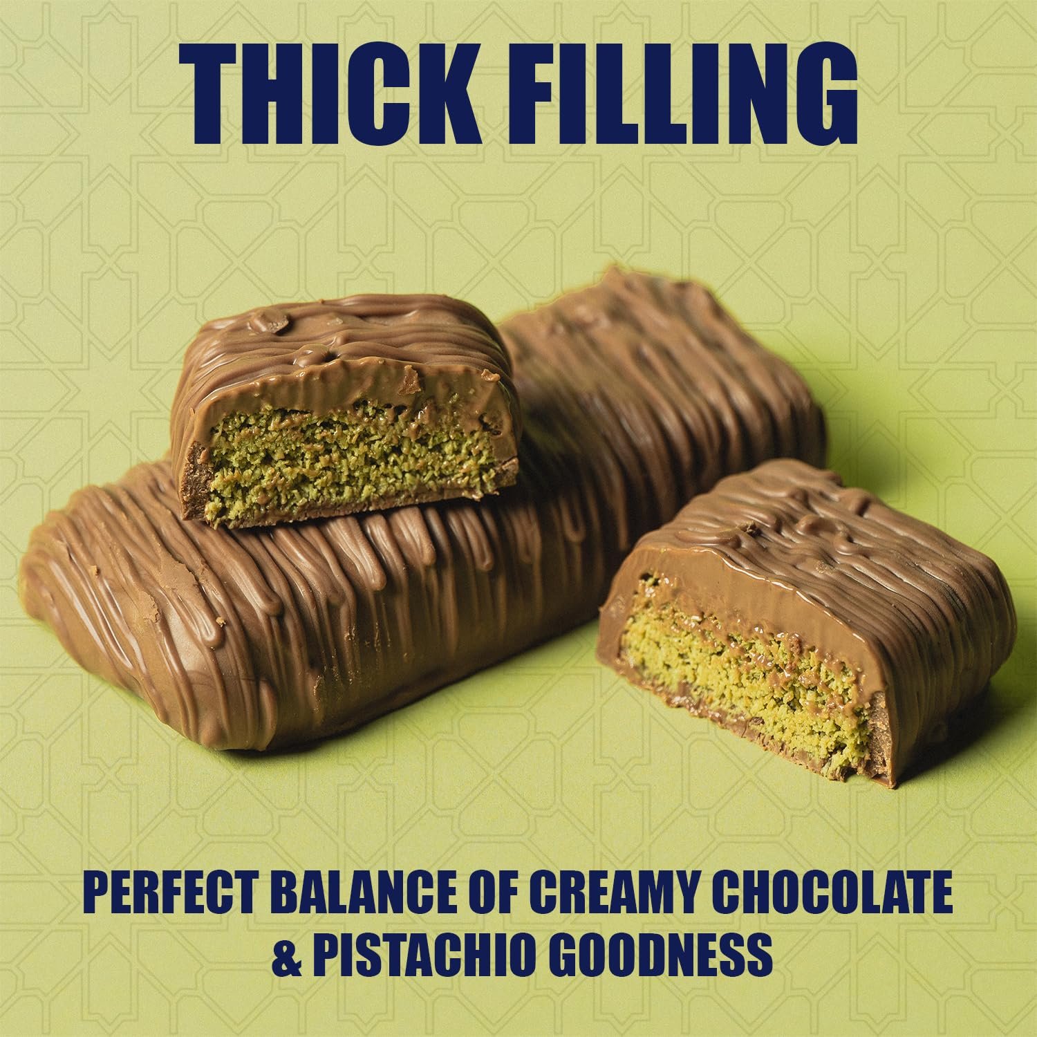 Exquisite Taste Sensation: Delight in the luxurious blend of rich Belgian milk chocolate and a sumptuous filling of fresh pistachio paste cream, harmoniously combined with the traditional flavors of knafeh.