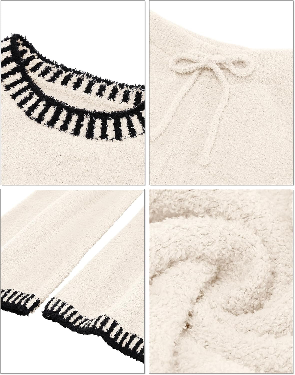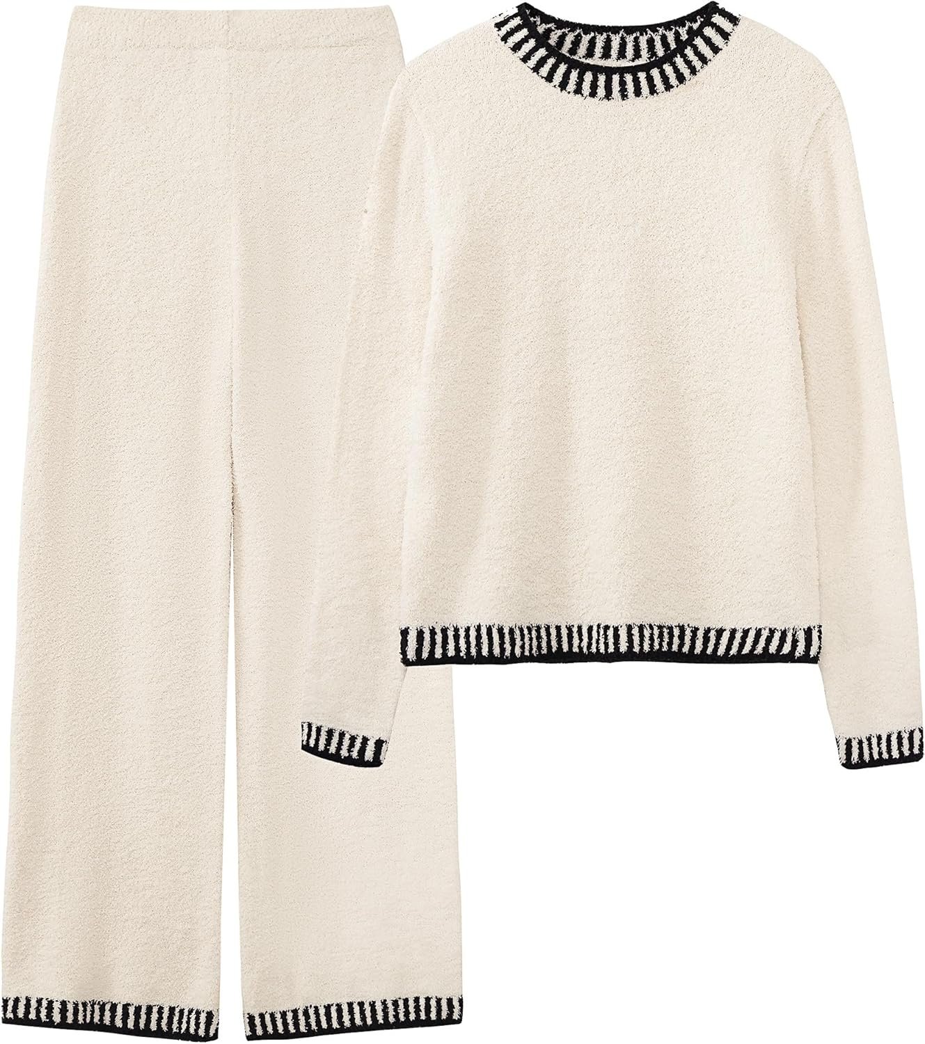 luvamia womens lounge set comes with a long sleeve crewneck top and a pair of matching pants. The fuzzy knit fabric with nice stretch provides maximum comfort for daily and lounging around.