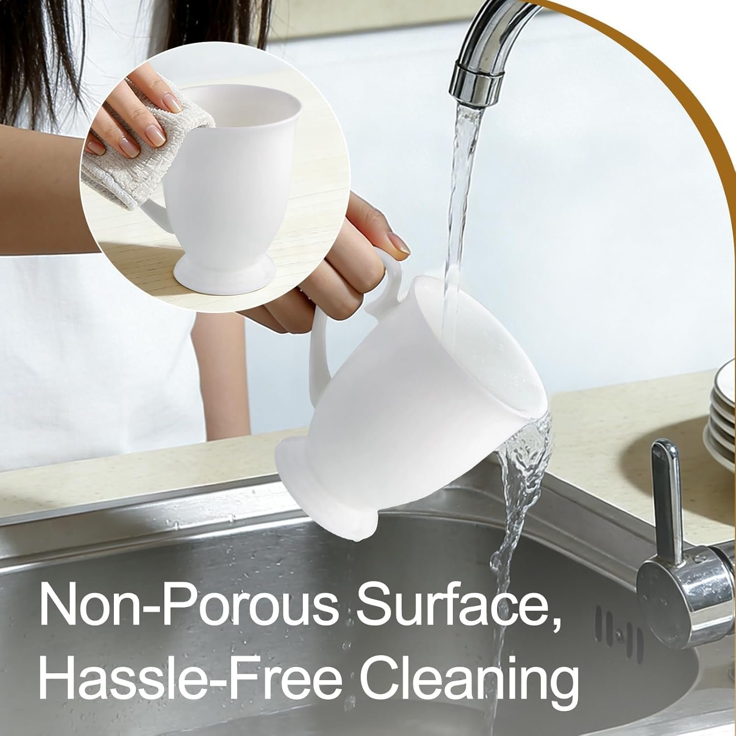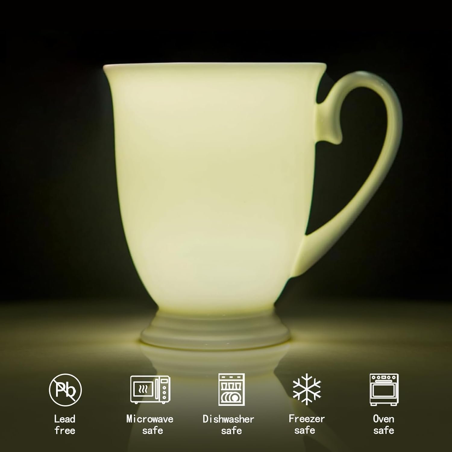 [Luxury Bone China] Our mug is handmade from high-quality bone china. Compared to ordinary porcelain, these fine bone china mugs feature a more elegant whiteness, lighter weight, superior heat retention, thinner rim and enhanced durability. When light passes through the mug’s walls, it emits a soft, moonlight-like glow