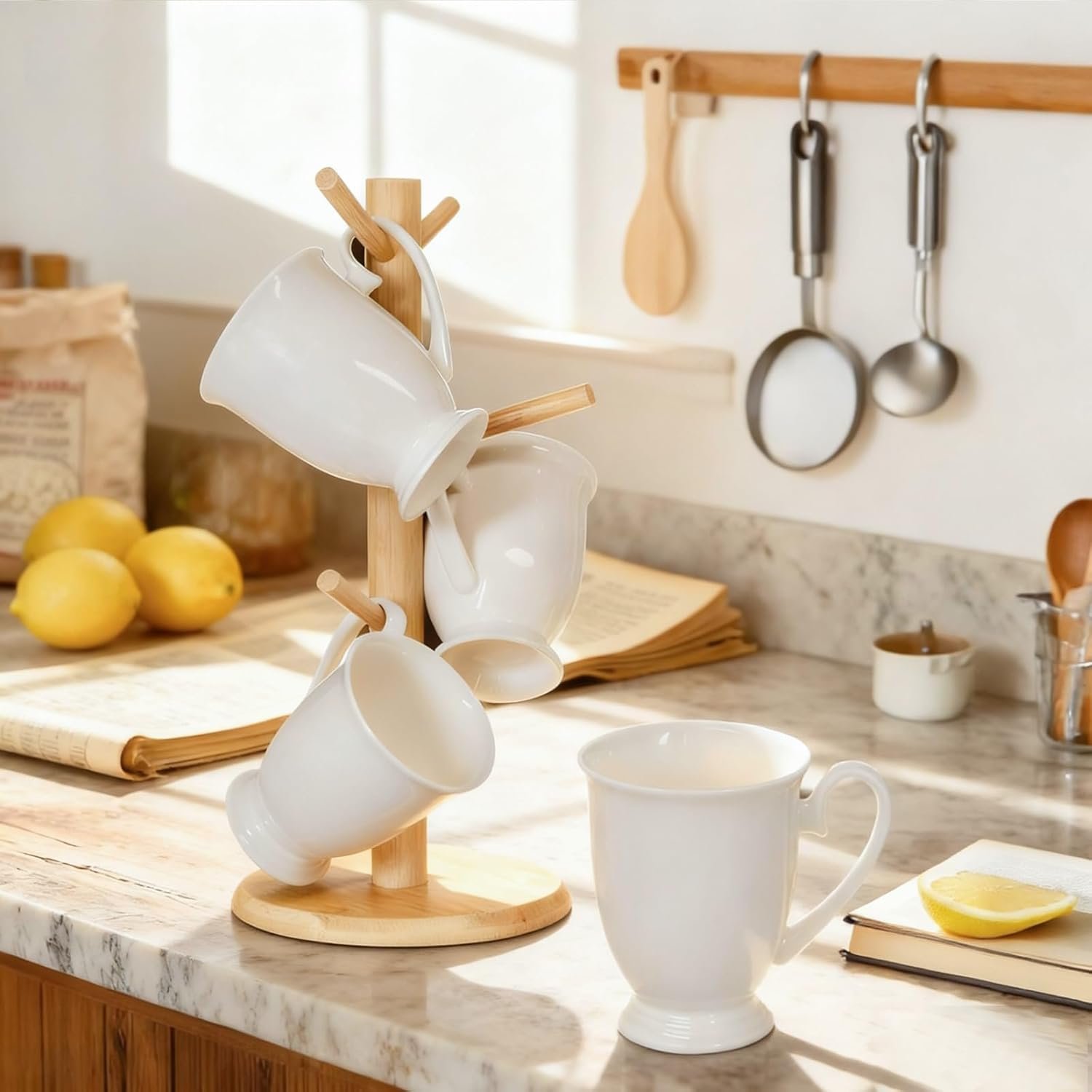 [Elegant Mugs Set] This set includes four 8 oz royal-style vintage coffee mugs made from premium fine bone china. Designed with a goblet-style silhouette and a smooth lip rim, these pedestal coffee cups are perfect for daily rituals or as a thoughtful gift