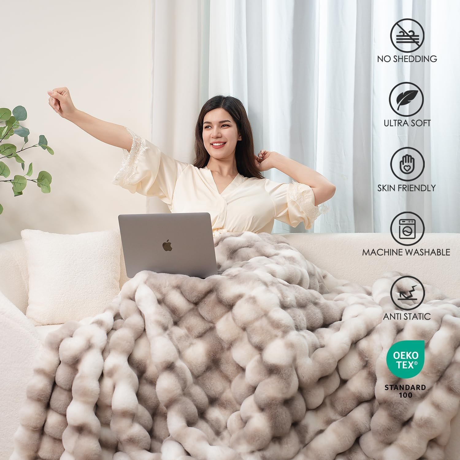 THE PERFECT PRESENT FOR ANY OCCASION:Our Faux Rabbit Fur Throw Blanket Is Suitable For All Seasons, Specially Autumn And Winter