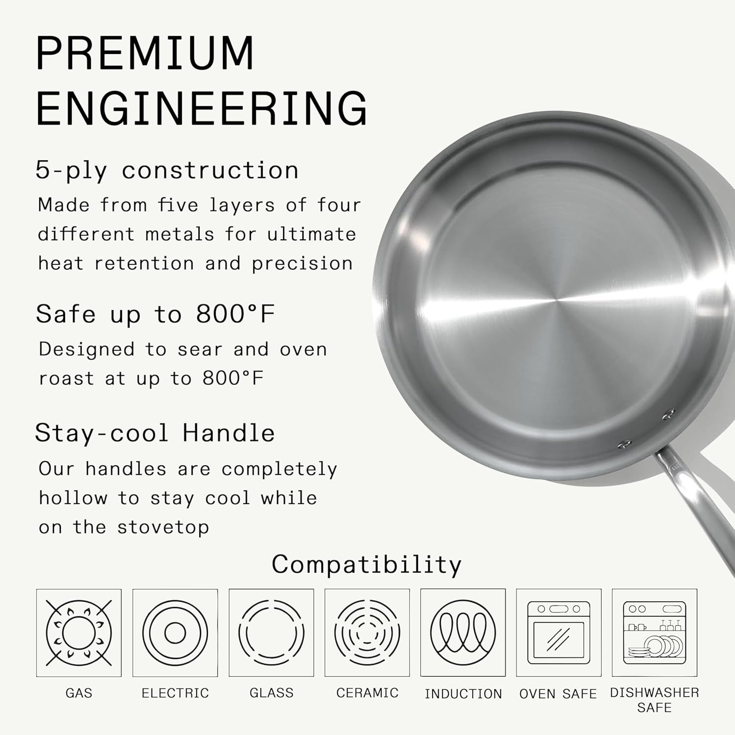 Superior Quality – Made from 5 layers of premium metal for professional-quality heat distribution