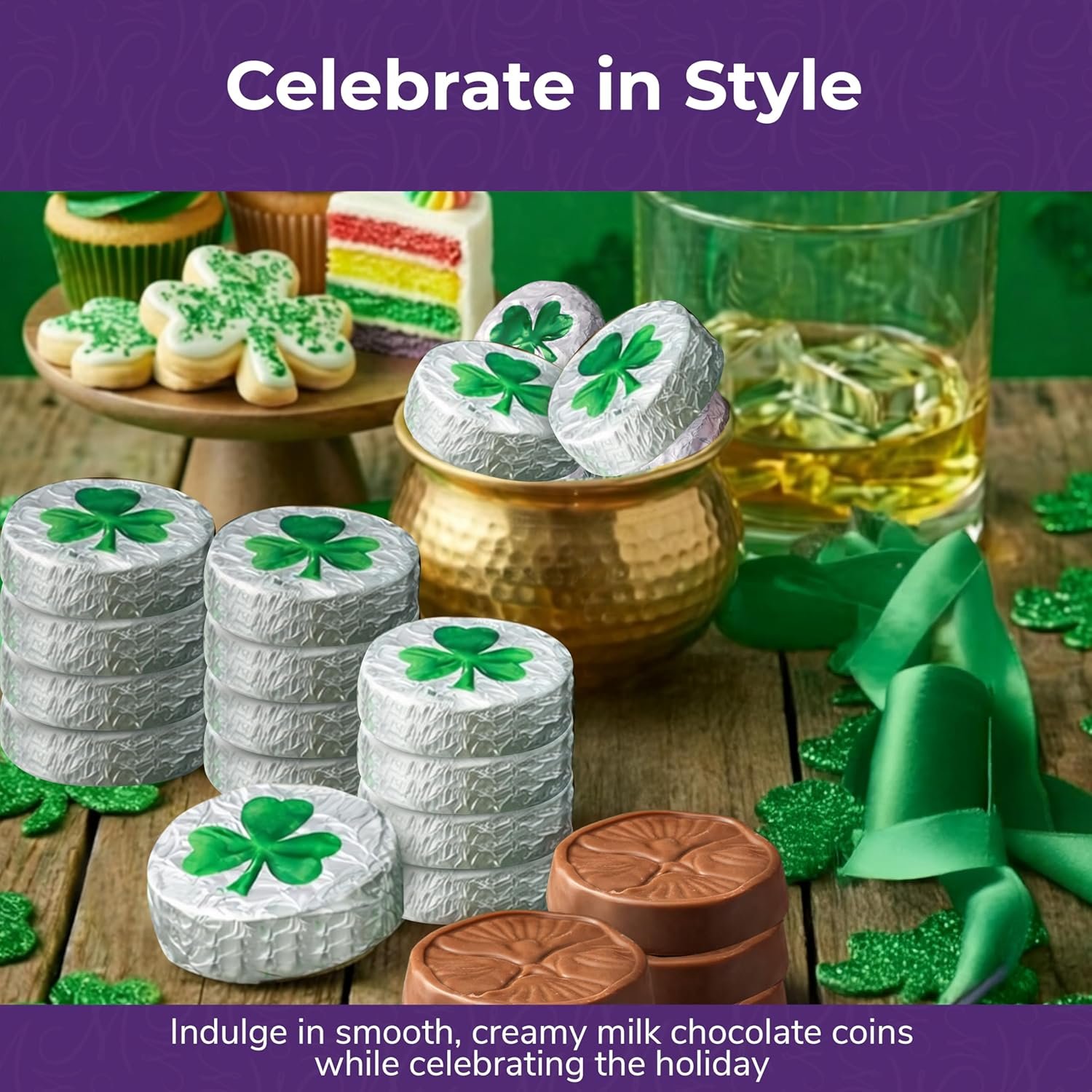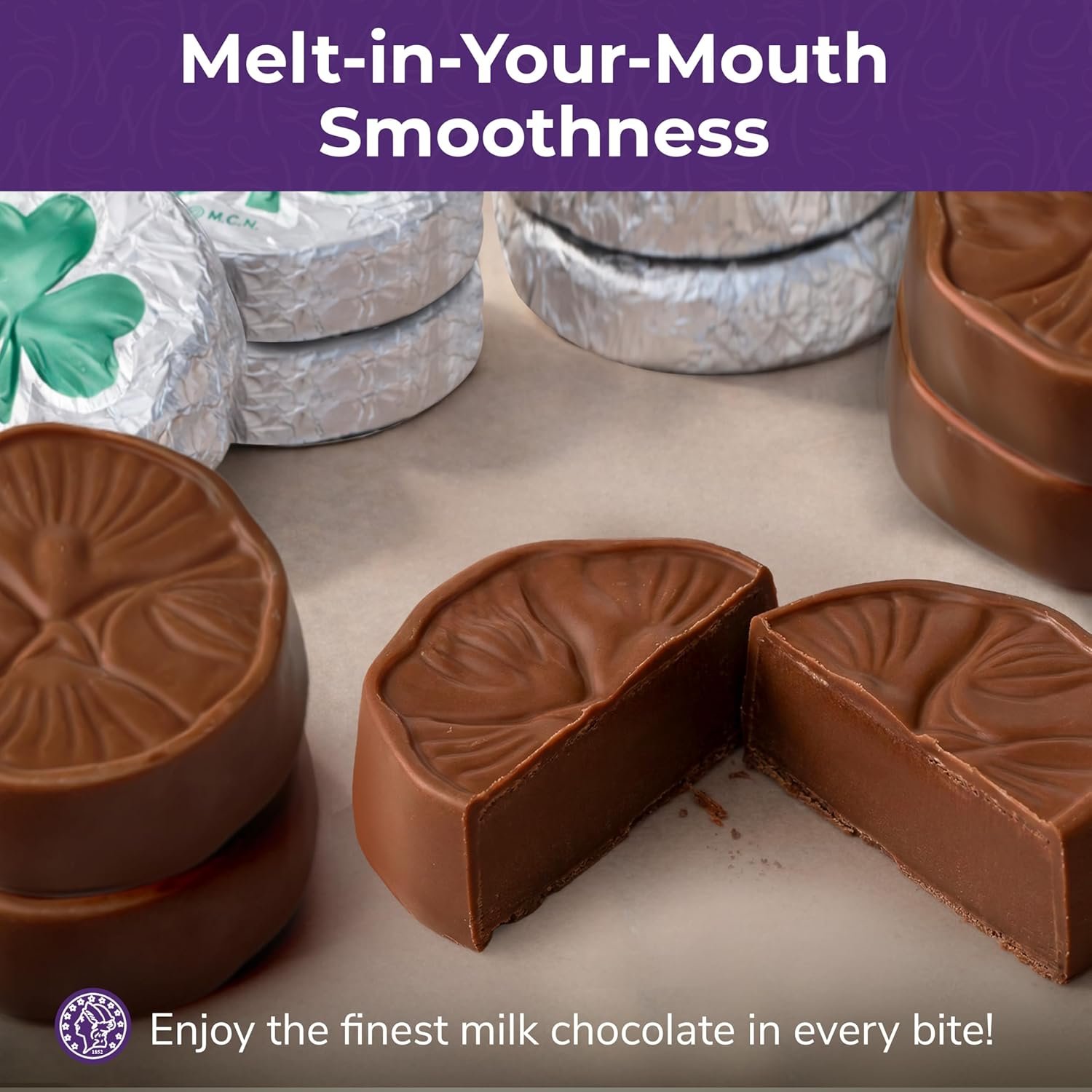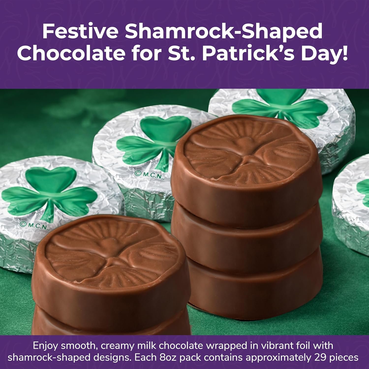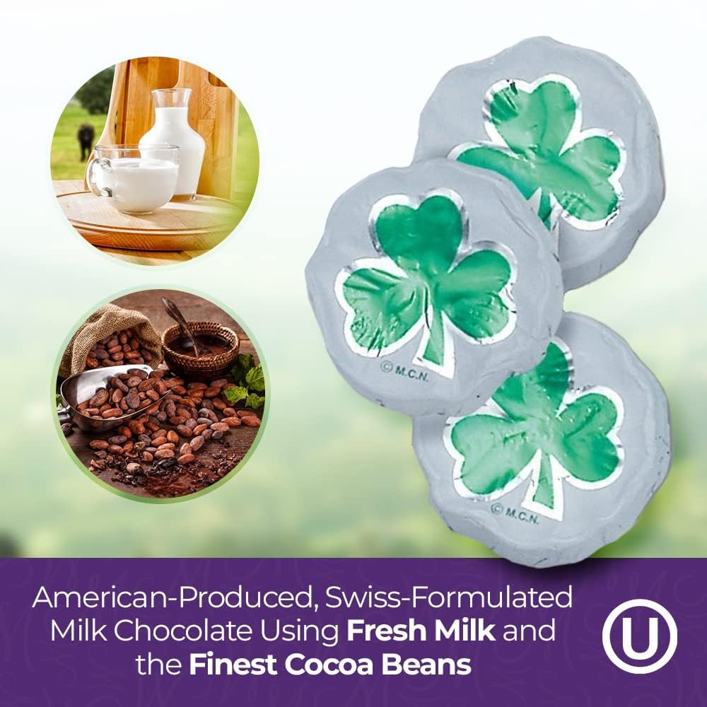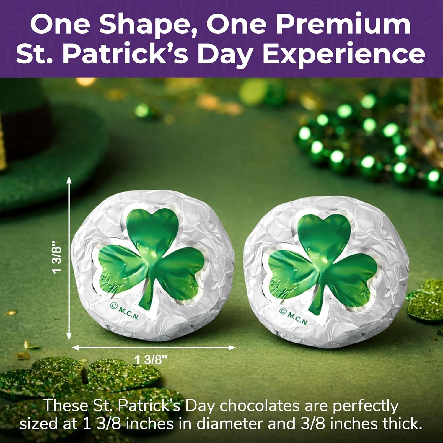 Exquisite Italian Foil: Each Premium Milk Chocolate Shamrock is individually wrapped in two-sided matte white Italian foil with a shiny green shamrock in the center, making it the perfect choice for St. Patrick’s Day gifts, party bags and candy dishes.